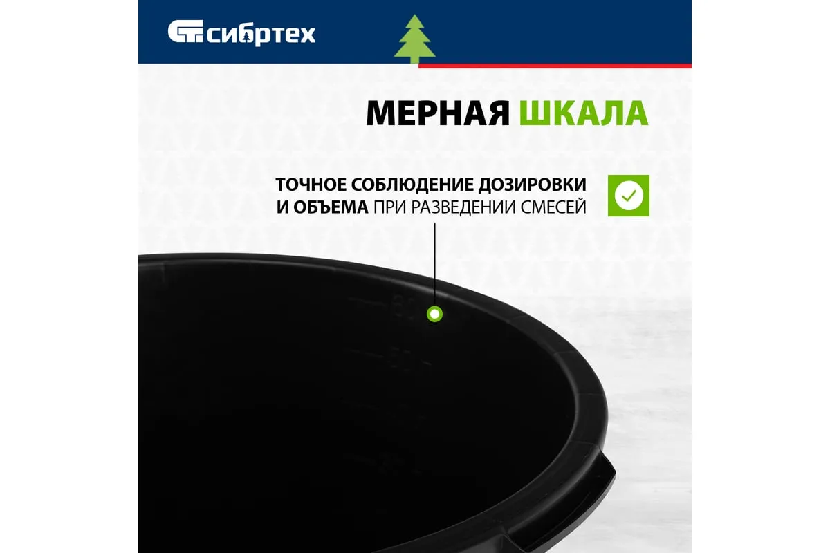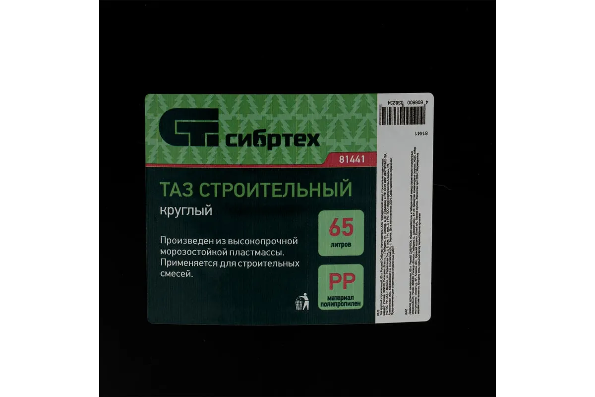 Круглый строительный таз Сибртех 81441 объемом 65 л используется для приготовления штукатурных, шпаклевочных, красящих, клеевых растворов при проведении ремонтных и отделочных работ. Пригодится таз и в быту — в нем удобно хранить и перемещать сыпучие материалы.