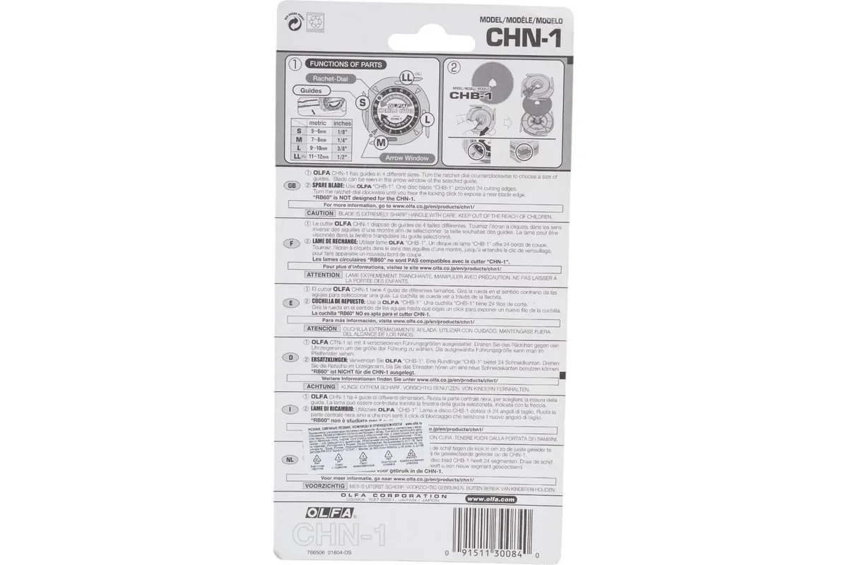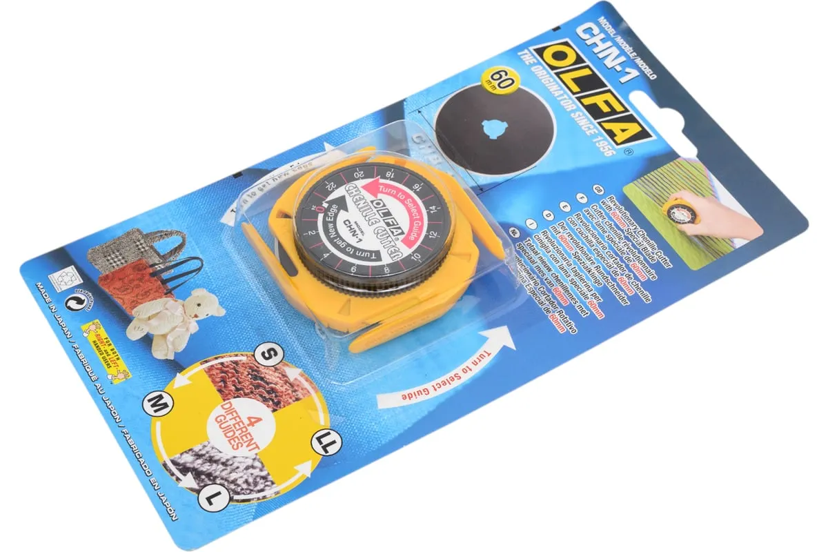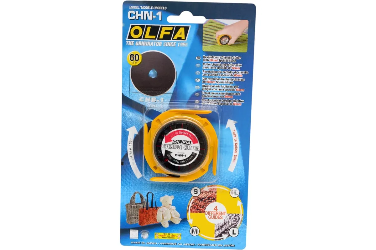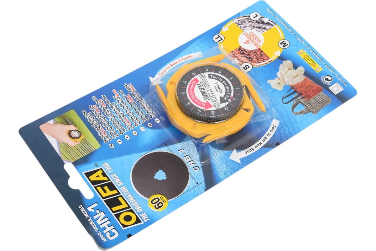 Круговой нож OLFA 60 мм OL-CHN-1 удобен при работе как правой, так и левой рукой. Нож применяется для создания эффекта бахромы. За счет четырех направляющих возможно создание полосок различной толщины. Лезвие инструмента имеет 24 режущих сегмента.