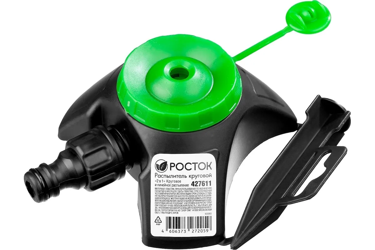 Круговой распылитель РОСТОК 427611 предназначен для бережного полива садовых растений. Благодаря специальному колышкупроисходит надежное крепление устройства на поверхности. Надежная ударопрочная конструкцияобеспечивает долгий срок службы.