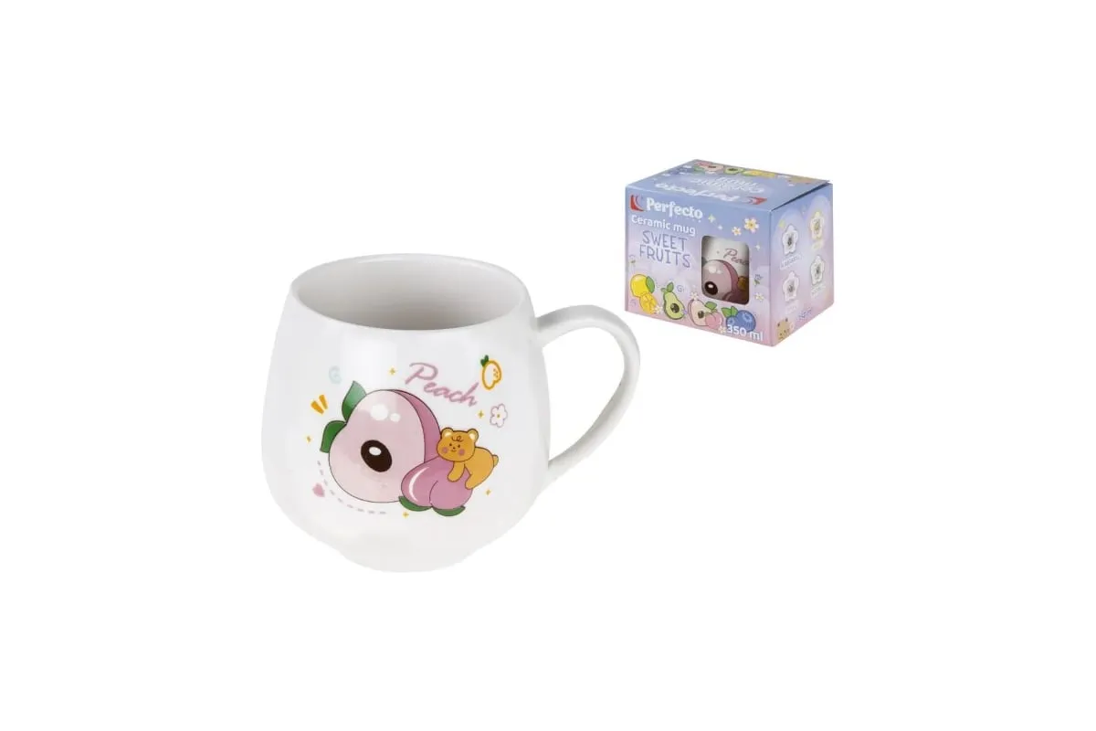 Керамическая кружка PERFECTO LINEA Sweet fruits с изображением персика объемом 350 мл станет практичным и стильным дополнением кухни. Изготовленная из качественной керамики, она обеспечивает надежность и долговечность в использовании. Белый цвет с фруктовым рисунком придает изделию свежий и привлекательный вид, который украсит любой интерьер. Кружка оснащена удобной ручкой, что позволяет комфортно держать ее в руке. Двойные стенки помогают дольше сохранять температуру напитка, что особенно удобно для любителей горячего чая или кофе. Возможность мытья в посудомоечной машине облегчает уход за изделием, экономя время и усилия.