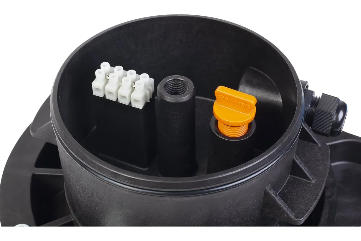 Предназначена для обустройства скважин в тех случаях, когда напорная труба от насоса выведена радиально ниже уровня среза обсадной трубы не менее чем на 200 мм (например, через скважинный адаптер).Крышка скважины применяется для того, чтобы герметизировать срез обсадной трубы скважины, обеспечить герметичный ввод и соединение электрокабеля насоса круглого сечения с наружным диаметром оболочки от 7 мм до 11 мм, с количеством проводников до 4-х, с сечением проводников до 2,5 мм², содержит проушину для подвеса насоса и дополнительную съемную заглушку для крепления шнура сливного клапана.