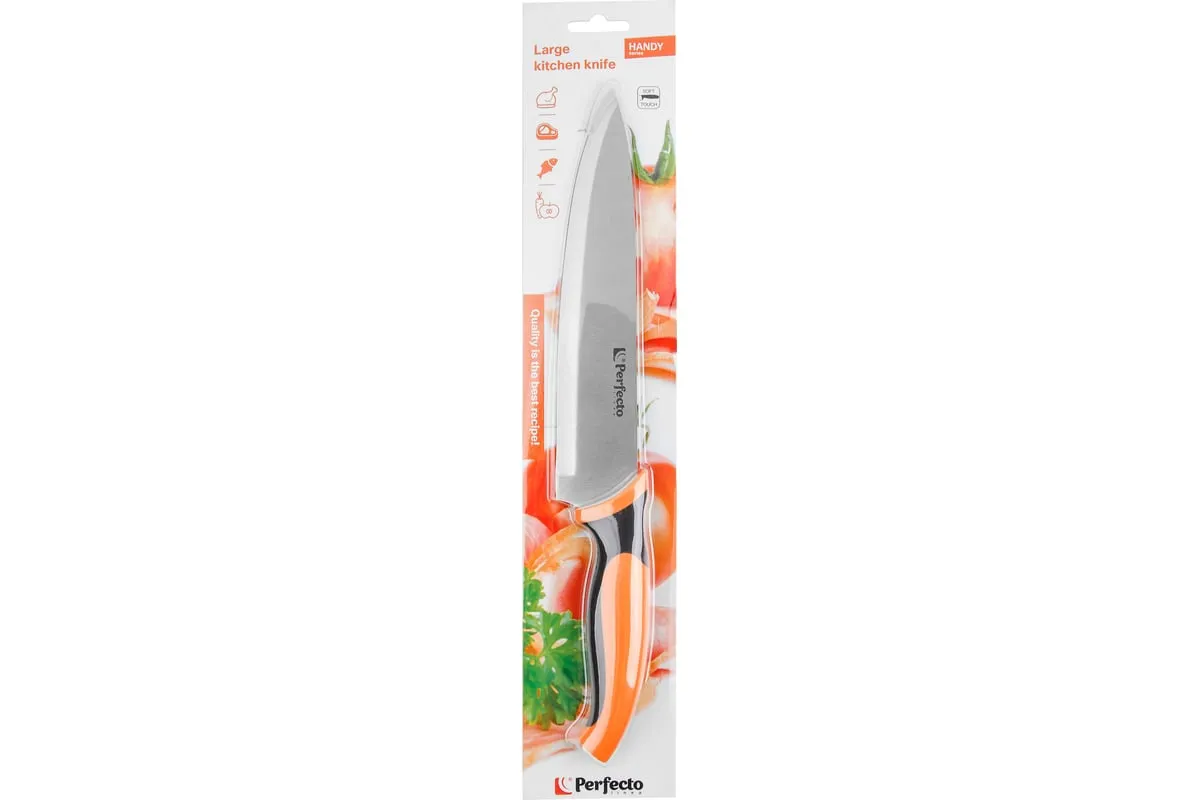 Кухонный нож PERFECTO LINEA Handy 21-372950 - универсальный нож идеально подходит для основных задач на кухне. Прочное лезвие из нержавеющей стали. Современный и комфортный дизайн: длинная эргономичная рукоятка комбинированная с покрытием Soft touch, подходит для всех размеров ладоней. Легко поддается заточке.