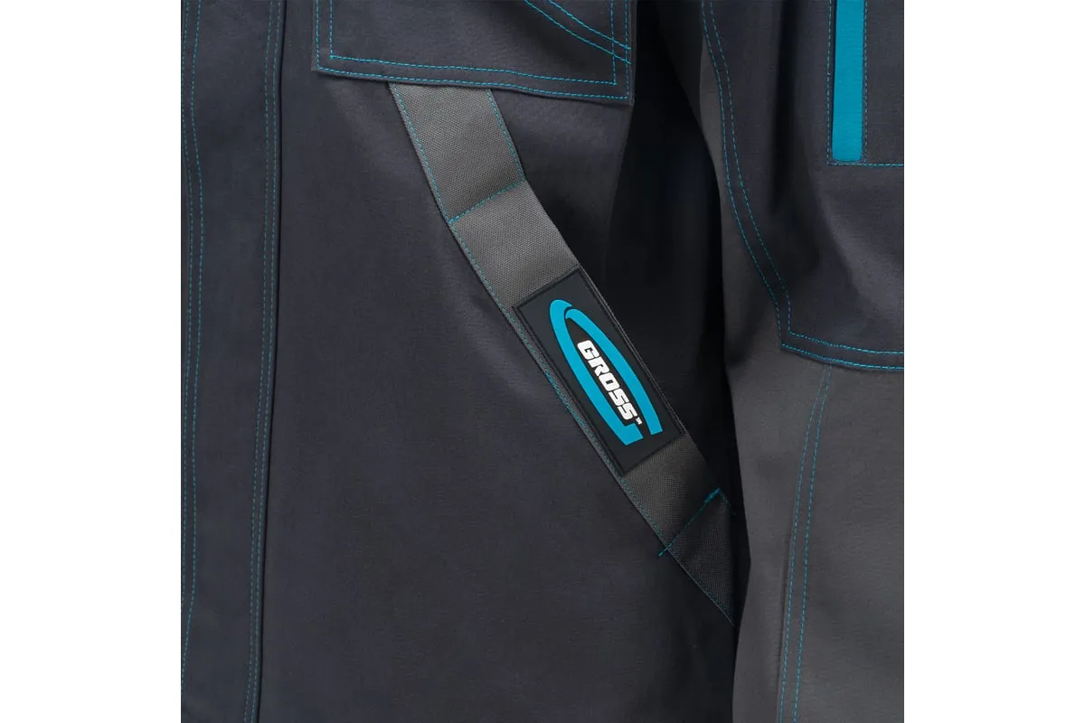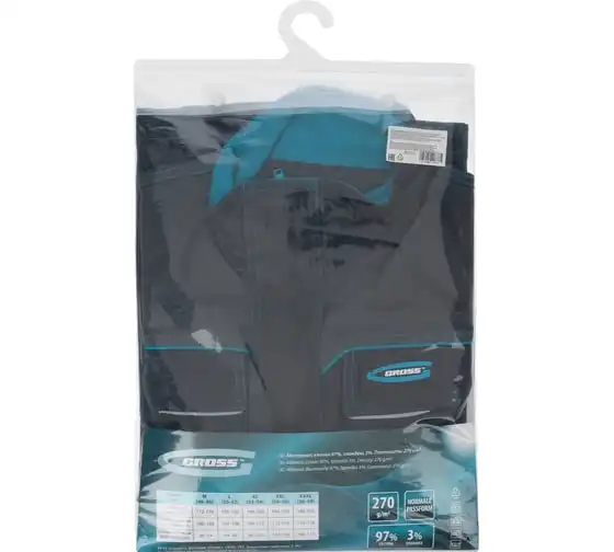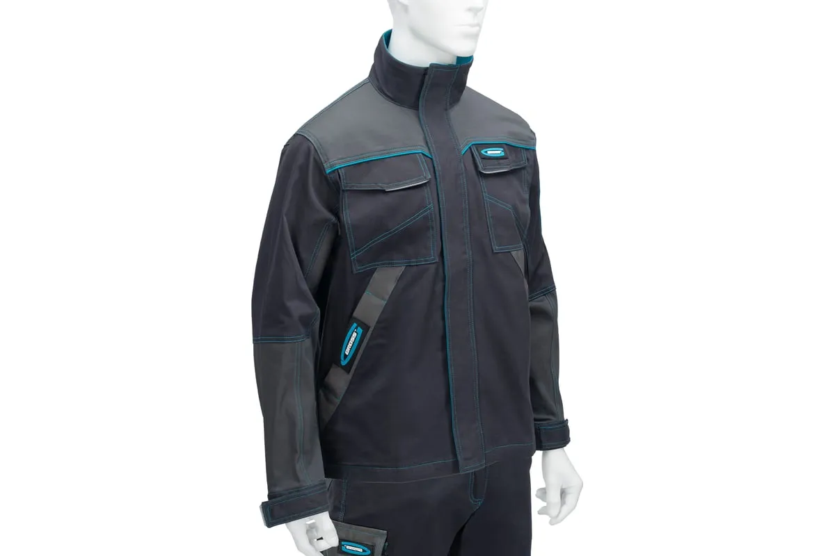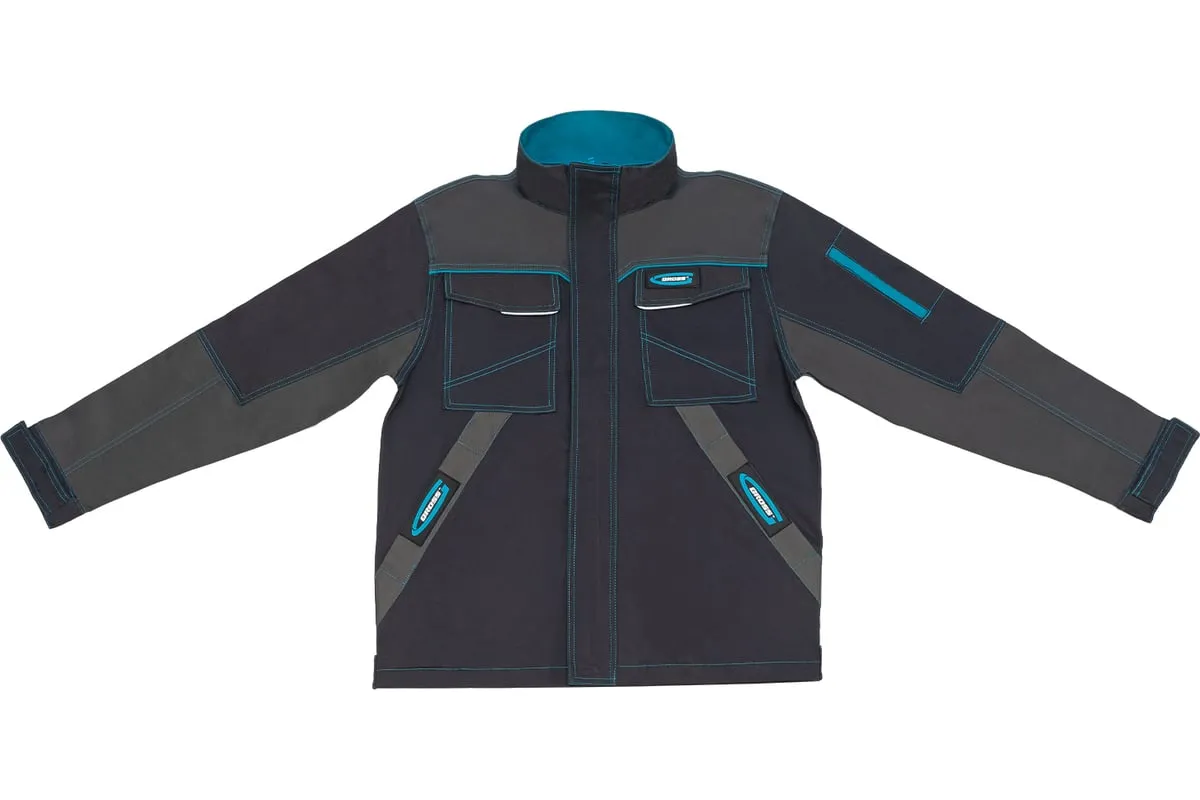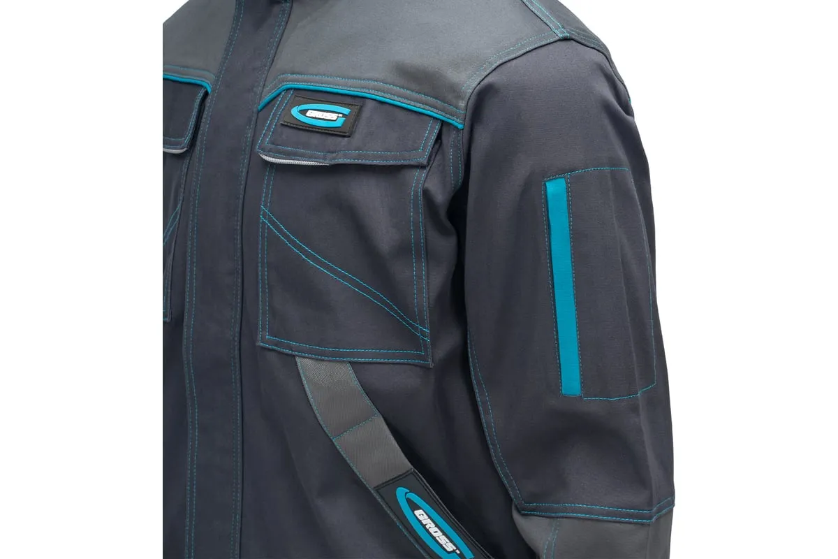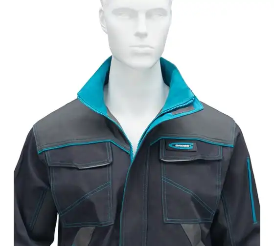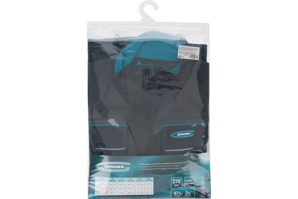 Профессиональная рабочая куртка Gross 90433 размера L защищает пользователя от общих производственных загрязнений, нетоксичной пыли, ветра и незначительных механических воздействий. Рассчитана на рост 176-182 см и предназначена для использования в теплое время года или в отапливаемом помещении. Куртка изготовлена из ткани с 97-процентным содержанием хлопка и 3-процентным содержанием спандекса. За счет наличия хлопковых волокон в составе ткань прекрасно пропускает воздух и приятна на теле, а спандекс делает ее более эластичной, поэтому в куртке удобно работать. Одежда выполнена в практичном темно-сером цвете.