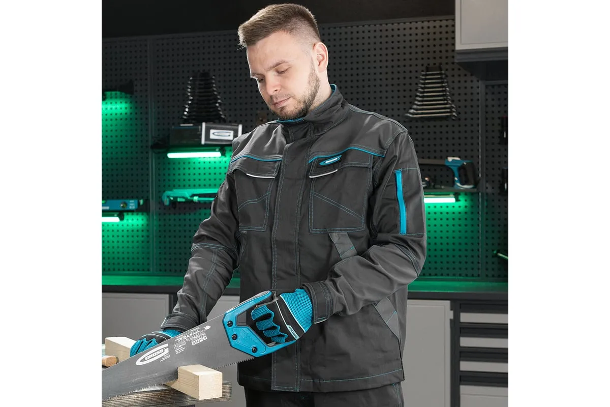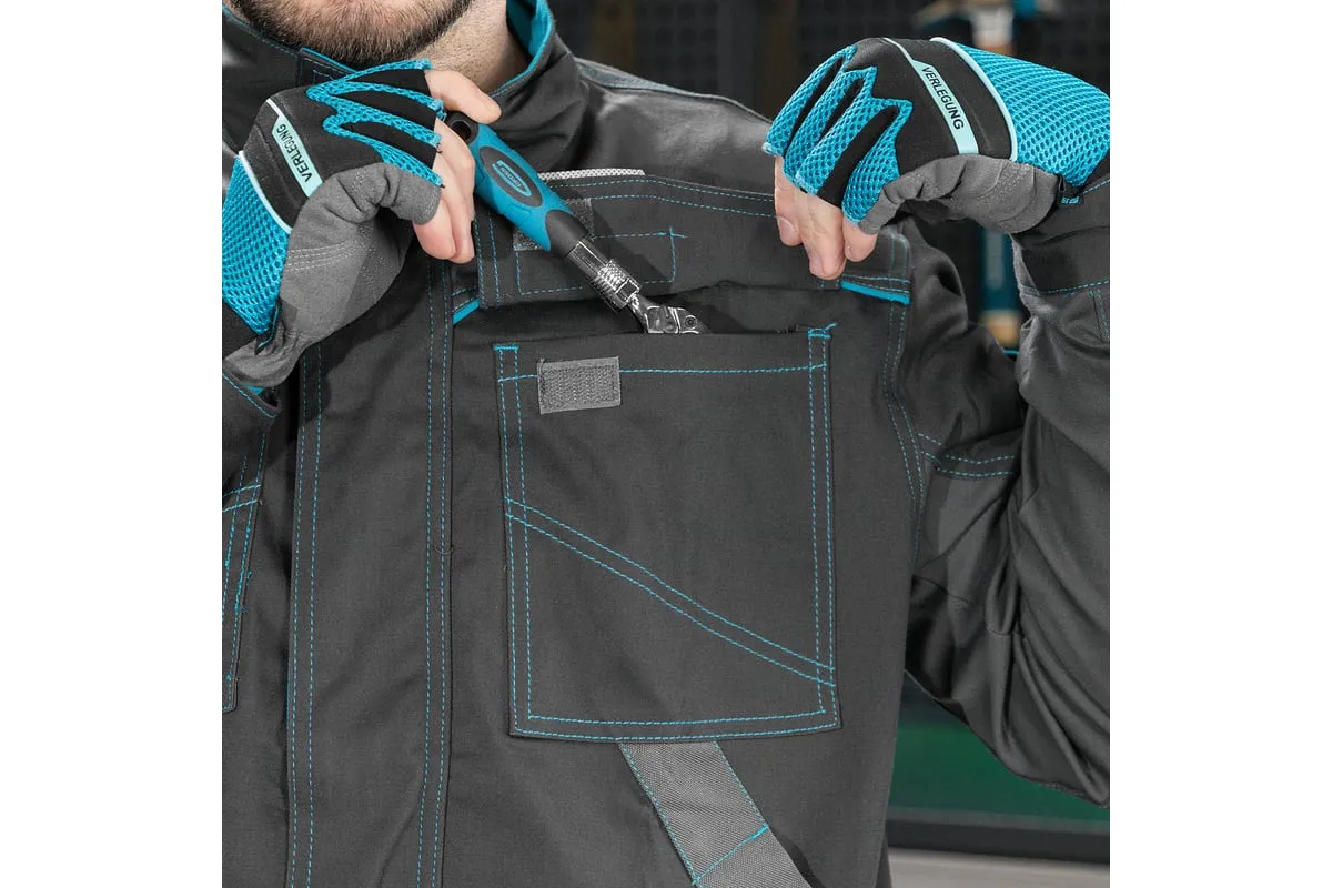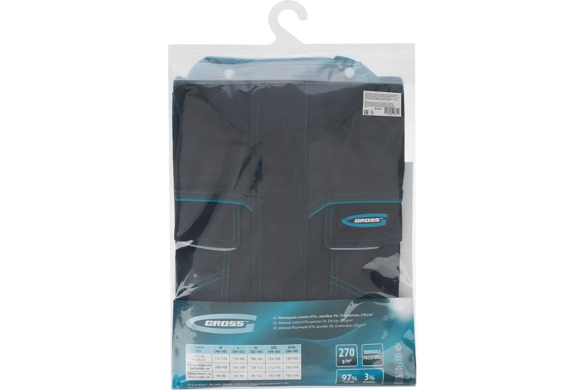 Профессиональная рабочая куртка Gross 90436 размера XXXL защищает пользователя от общих производственных загрязнений, нетоксичной пыли, ветра и незначительных механических воздействий. Рассчитана на рост 186-192 см и предназначена для использования в теплое время года или в отапливаемом помещении. Куртка изготовлена из ткани с 97-процентным содержанием хлопка и 3-процентным содержанием спандекса. За счет наличия хлопковых волокон в составе ткань прекрасно пропускает воздух и приятна на теле, а спандекс делает ее более эластичной, поэтому в куртке удобно работать. Одежда выполнена в практичном темно-сером цвете.