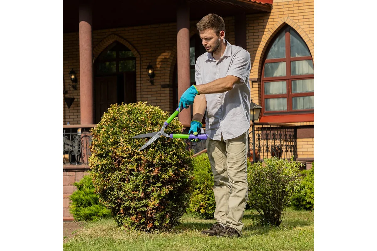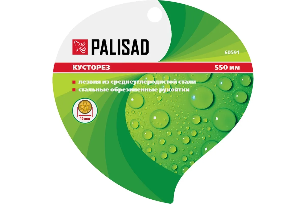 Кусторез Palisad 60591 длиной 550 мм, со стальными обрезиненными рукоятками, пригодится садоводам для ухода за участком. Поможет поддерживать аккуратный вид кустарников и живых изгородей. Кусторез подходит для подрезания молодых веток толщиной до 10 мм с целью омоложения и придания им нужной формы.