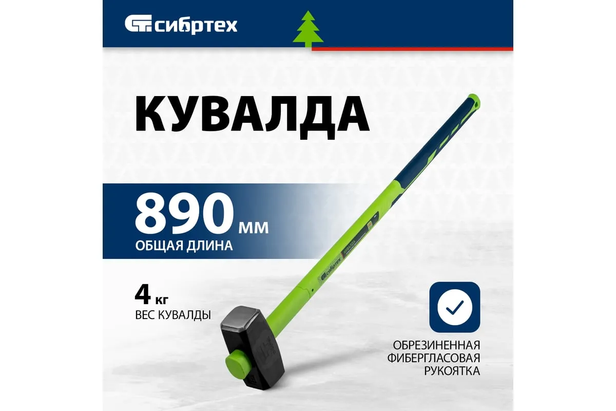 Кувалда Сибртех 10895 длиной 890 мм и весом 4000 г, с фибергласовой обрезиненной рукояткой, предназначена для демонтажных работ — разрушения конструкций из камня, кирпича, бетона. Удлиненная рукоятка позволяет наносить удары большой силы, а прочный кованый боек не подвержен деформациям. Кувалда рекомендована для профессионального применения.