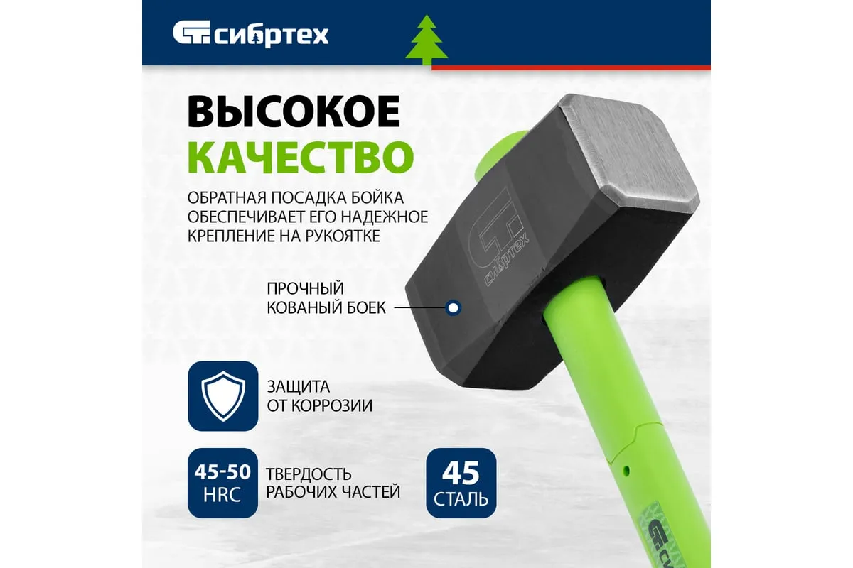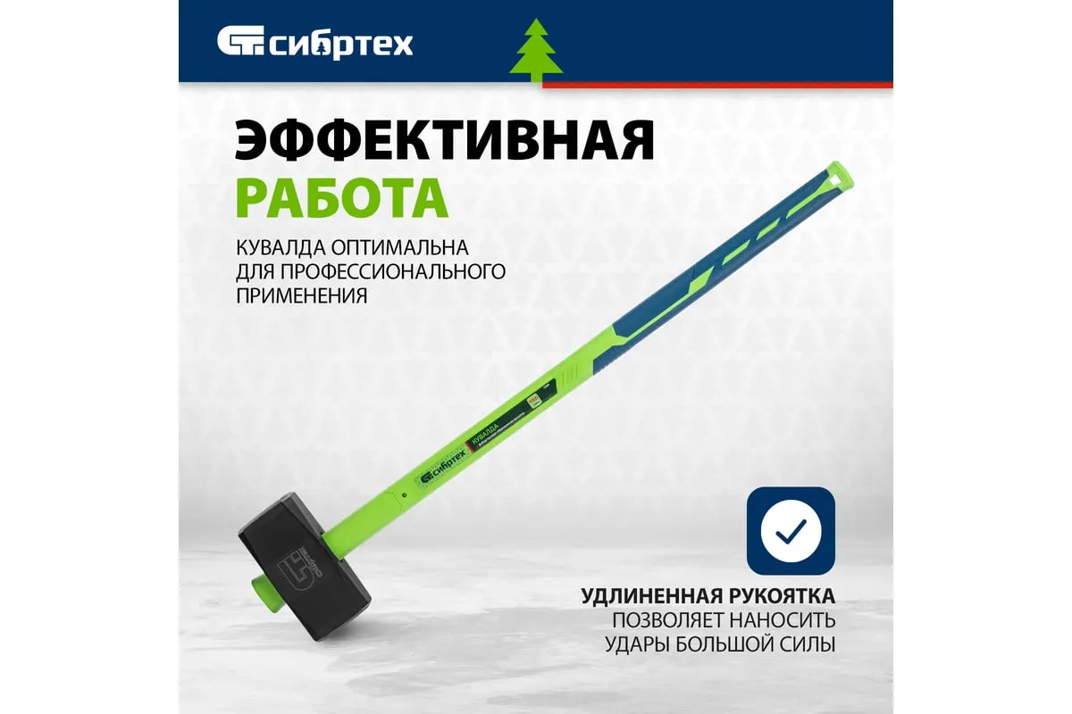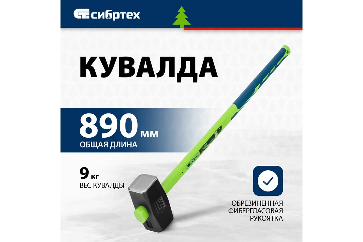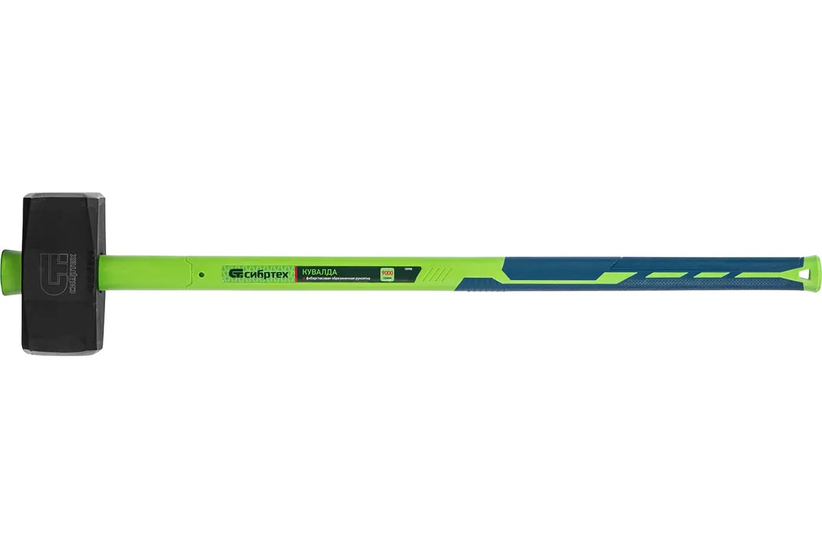 Кувалда Сибртех 10900 длиной 890 мм и весом 9000 г, с фибергласовой обрезиненной рукояткой, предназначена для демонтажных работ — разрушения конструкций из камня, кирпича, бетона. Удлиненная рукоятка позволяет наносить удары большой силы, а прочный кованый боек не подвержен деформациям. Кувалда рекомендована для профессионального применения.