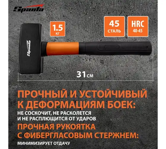Кувалда SPARTA 10915 весом всего 1.5 кг, предназначена для деформации различных поверхностей, при помощи ударной силы. Прочная конструкция обеспечивает качественное выполнение работ и комфортную эксплуатацию инструмента.