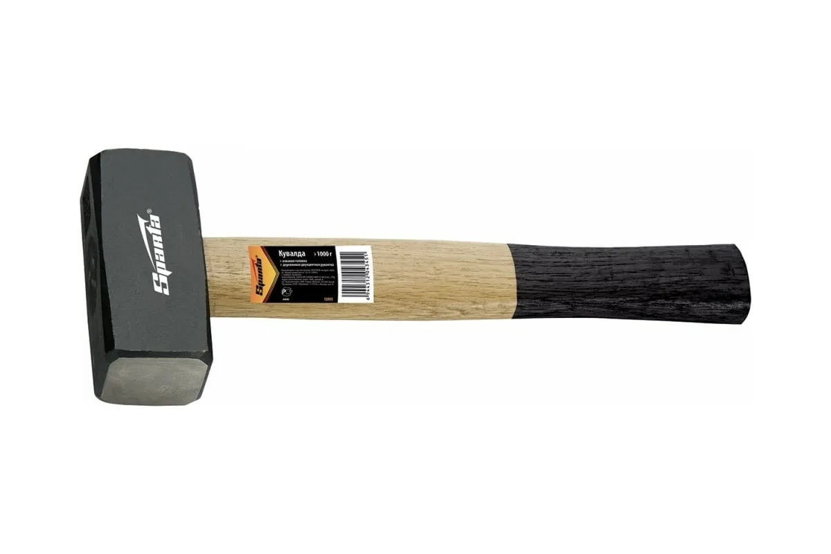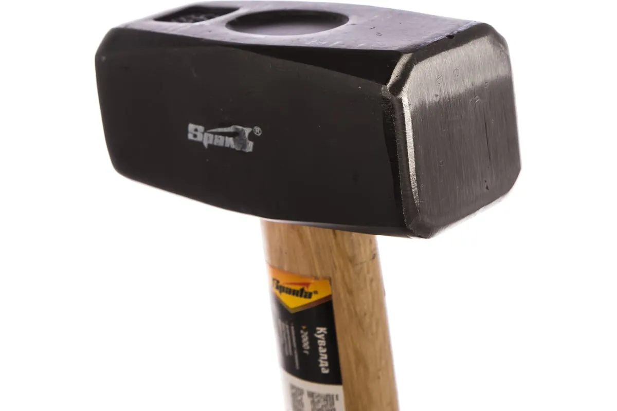 Кувалда SPARTA 10909 имеет высокопрочную конструкцию. Головка кованая, изготовлена из стали и покрыта черным лаком. Удобная рукоятка изготовлена из дерева и покрыта лаком. Вес инструмента составляет 2 кг.