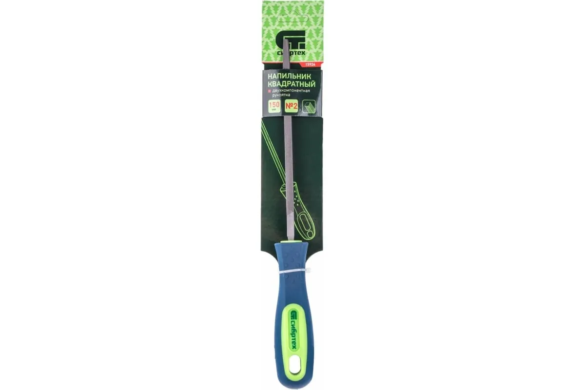 Квадратный напильник Сибртех 15924 с двухкомпонентной рукояткой, длина рабочей части 150 мм, насечка №2, — слесарный инструмент для ручной доводки металлических деталей. Его используют для обработки плоских поверхностей, пазов, отверстий квадратного и прямоугольного сечения. Инструмент со средней насечкой подходит для точной шлифовки изделий после грубой обработки драчевым напильником. Применяется в слесарном деле и в быту.