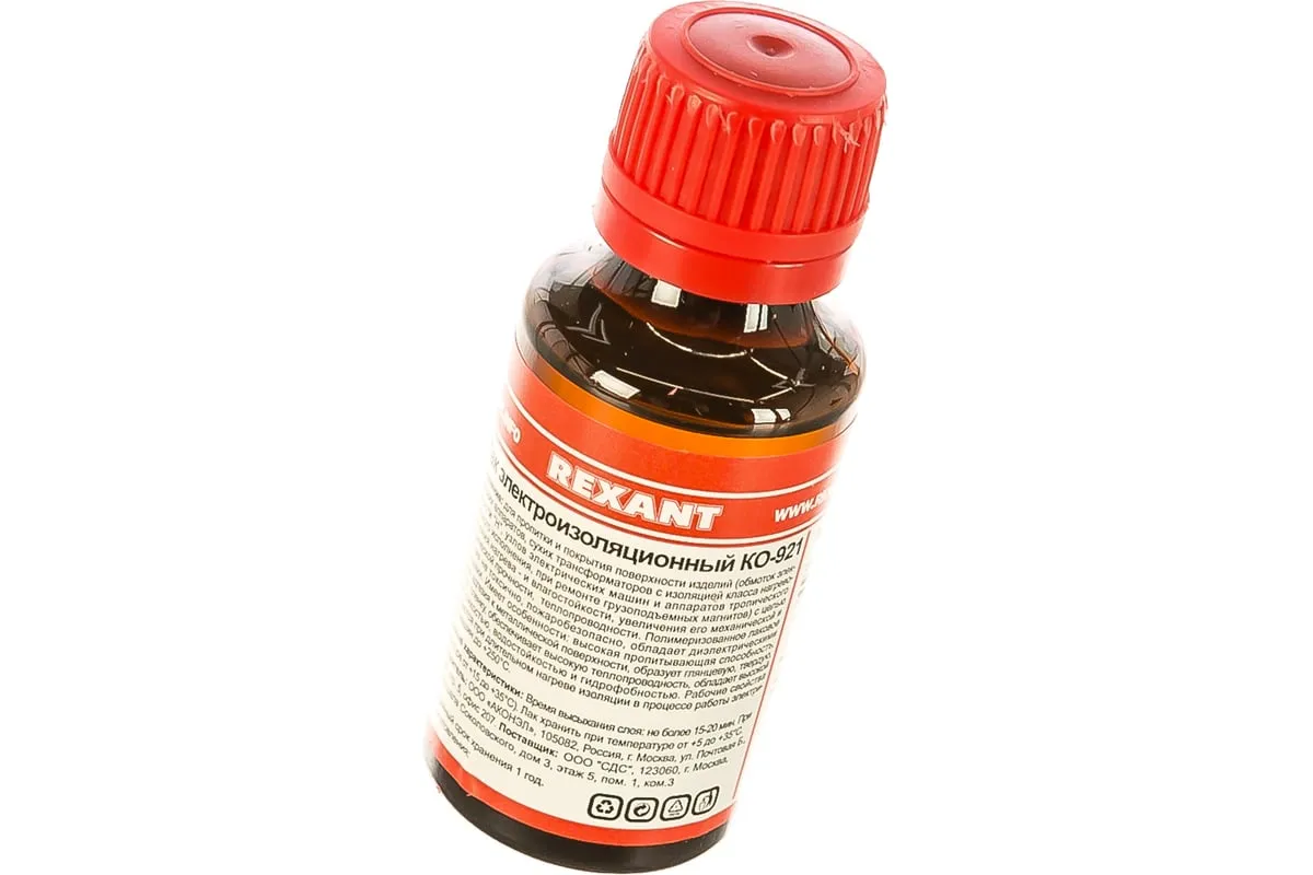 Лак электроизоляционный KO-921 30 мл REXANT 09-3788 используется для обработки обмоток электрических аппаратов, сухих трансформаторов с изоляцией класса нагревостойкости "Н", узлов электрических машин, при ремонте грузоподъемных магнитов. Состав лака нетоксичен и непожароопасен.