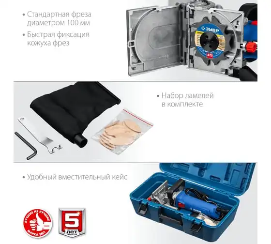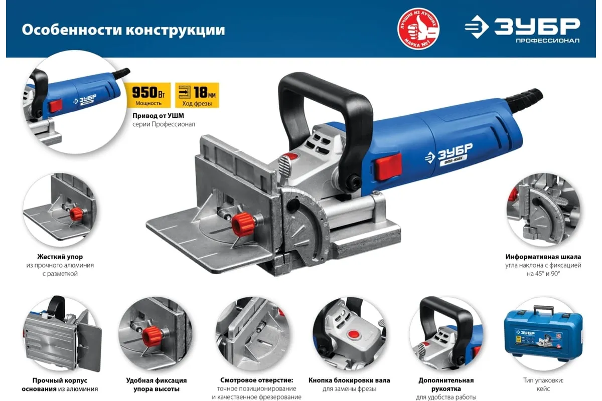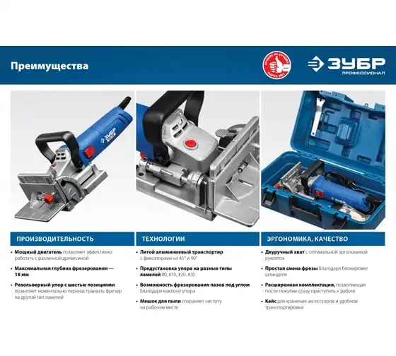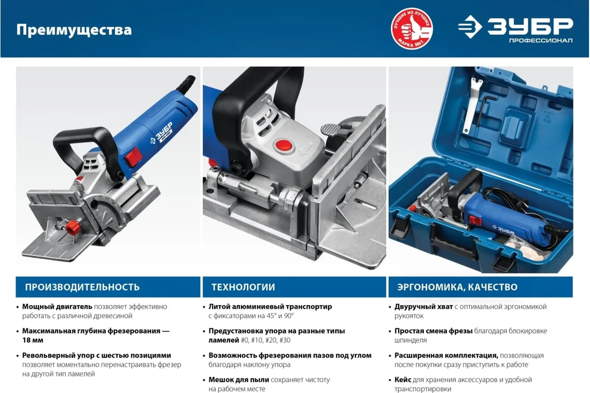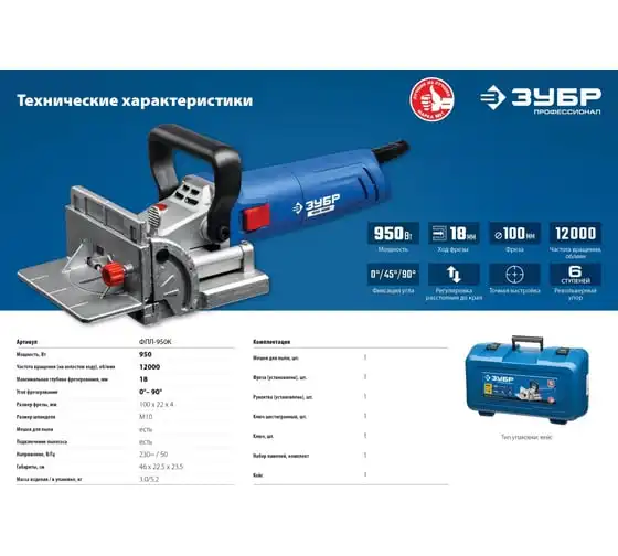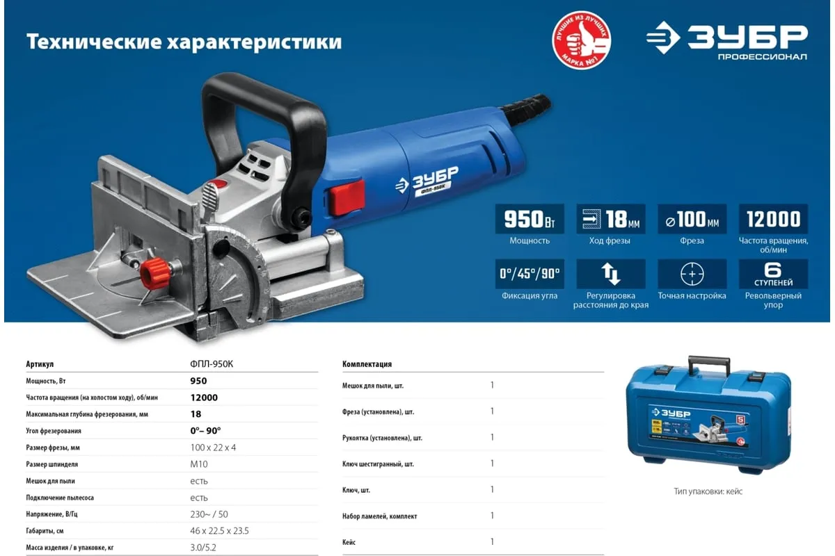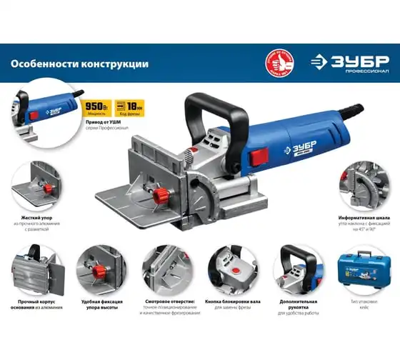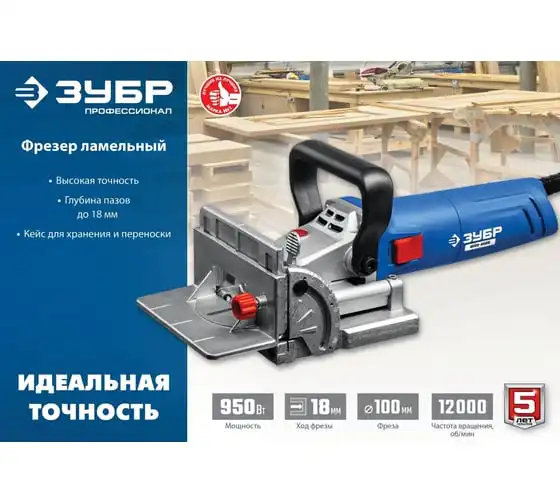 Ламельный фрезер ЗУБР Профессионал 950 Вт, в кейсе ФПЛ-950К применяется для формирования линейных пазов, для обеспечения ламельного соединения деревянных конструкций.