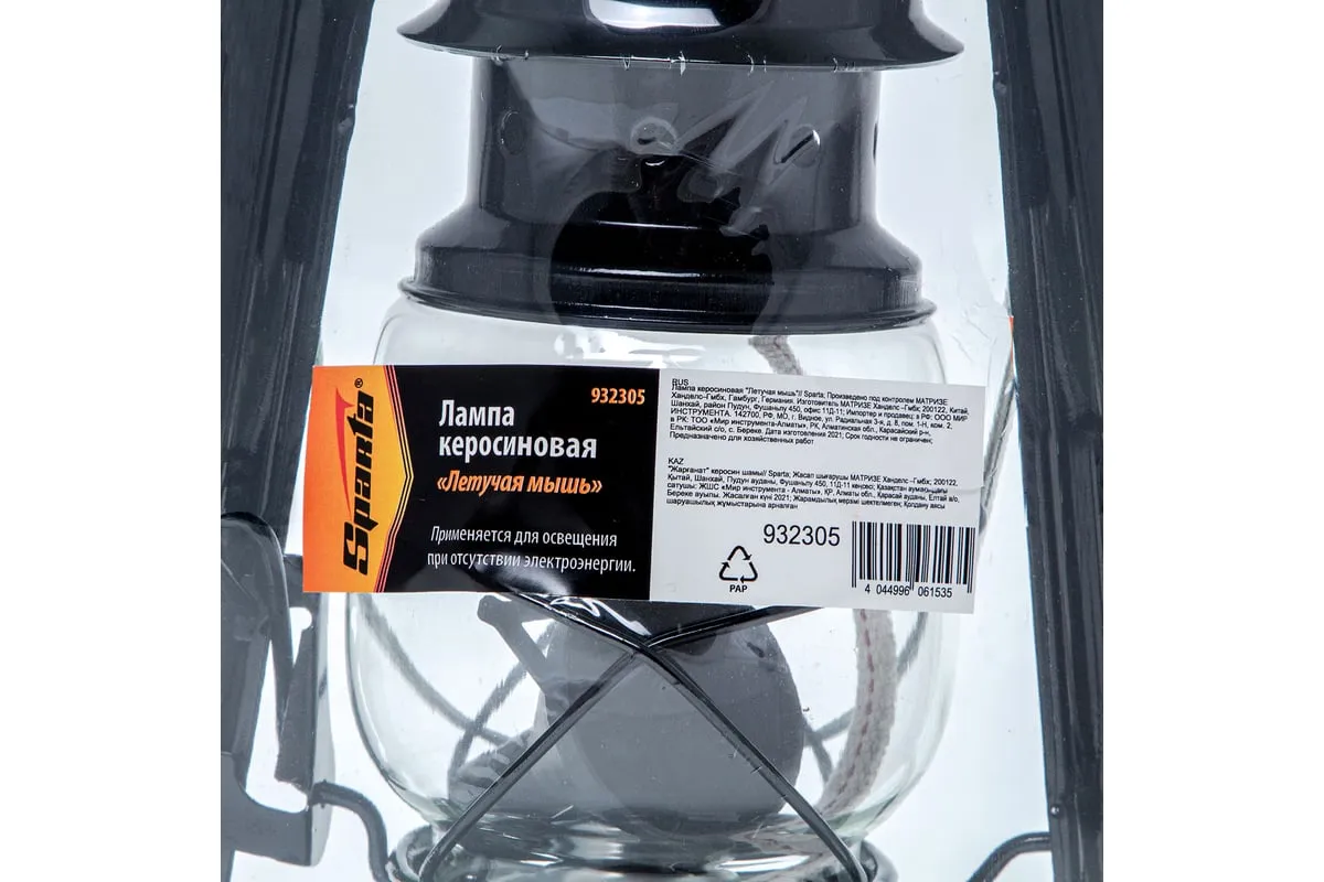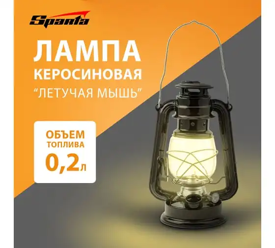 Керосиновая лампа Летучая мышь SPARTA 932305 применяется для освещения небольшого помещения при отсутствии электричества. Жестяная лампа оснащена колбой из ударо- и жаропрочного стекла. Лампа работает на керосине и лампадном масле. Яркость регулируется высотой фитиля.