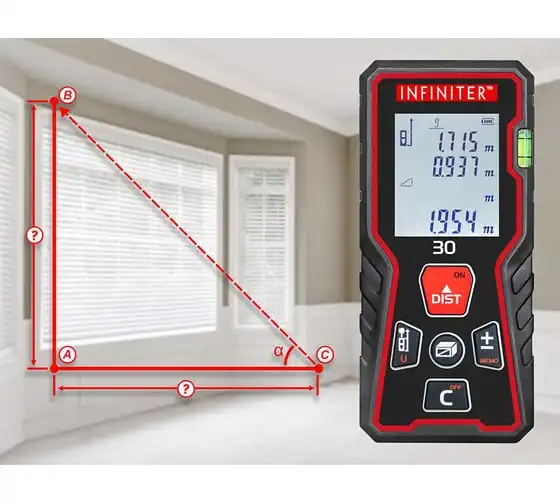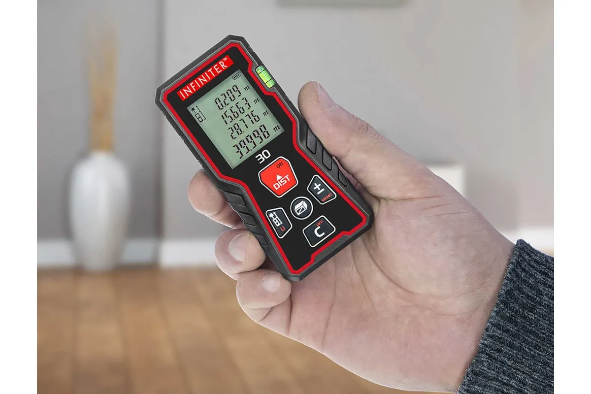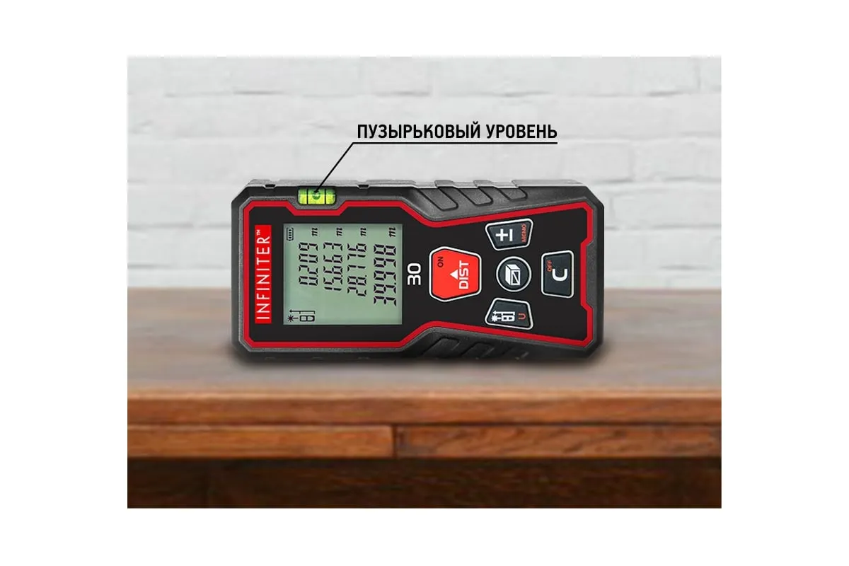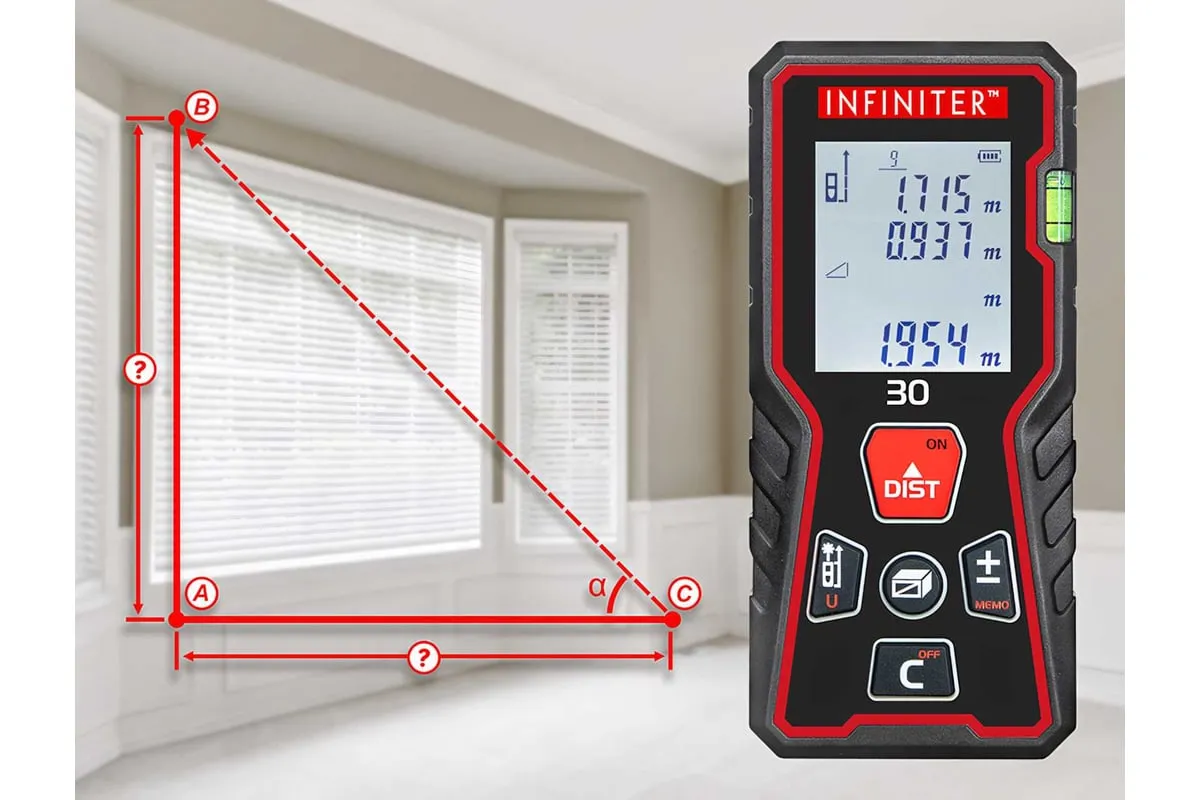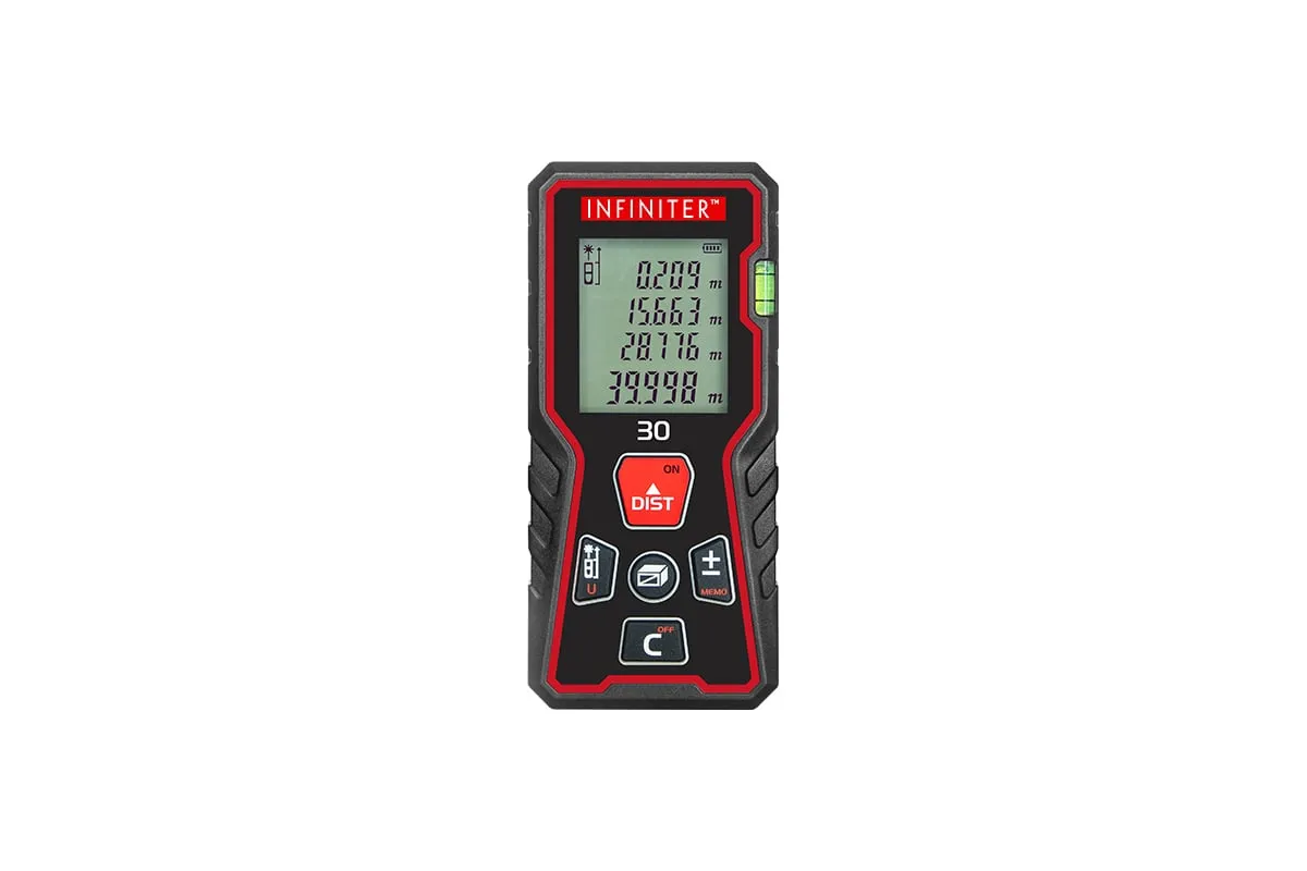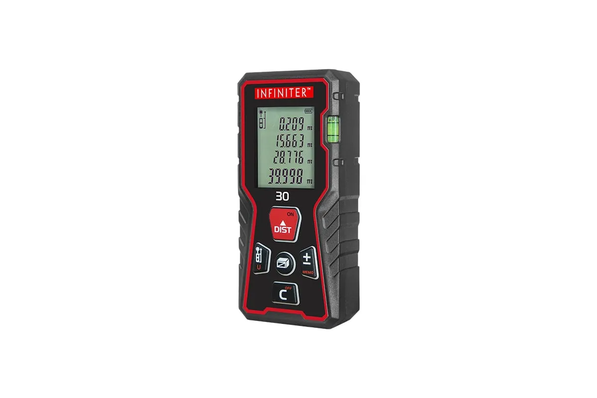 Лазерный дальномер INFINITER 30 1-2-325 используется для измерения расстояний, длин, высот, проведения вычисления площадей и объемов измеряемых объектов, а также косвенных измерений с помощью теоремы Пифагора. Можно производить измерения как в помещении, так и на улице.