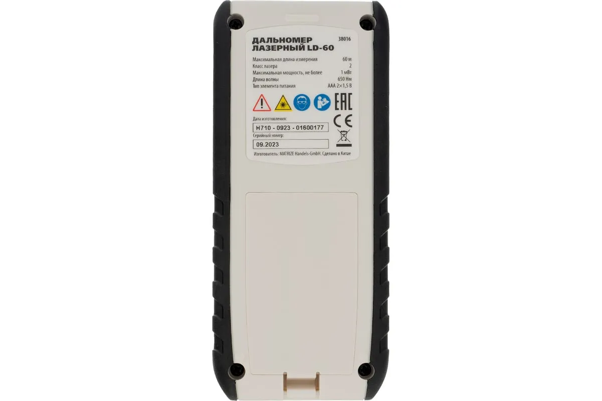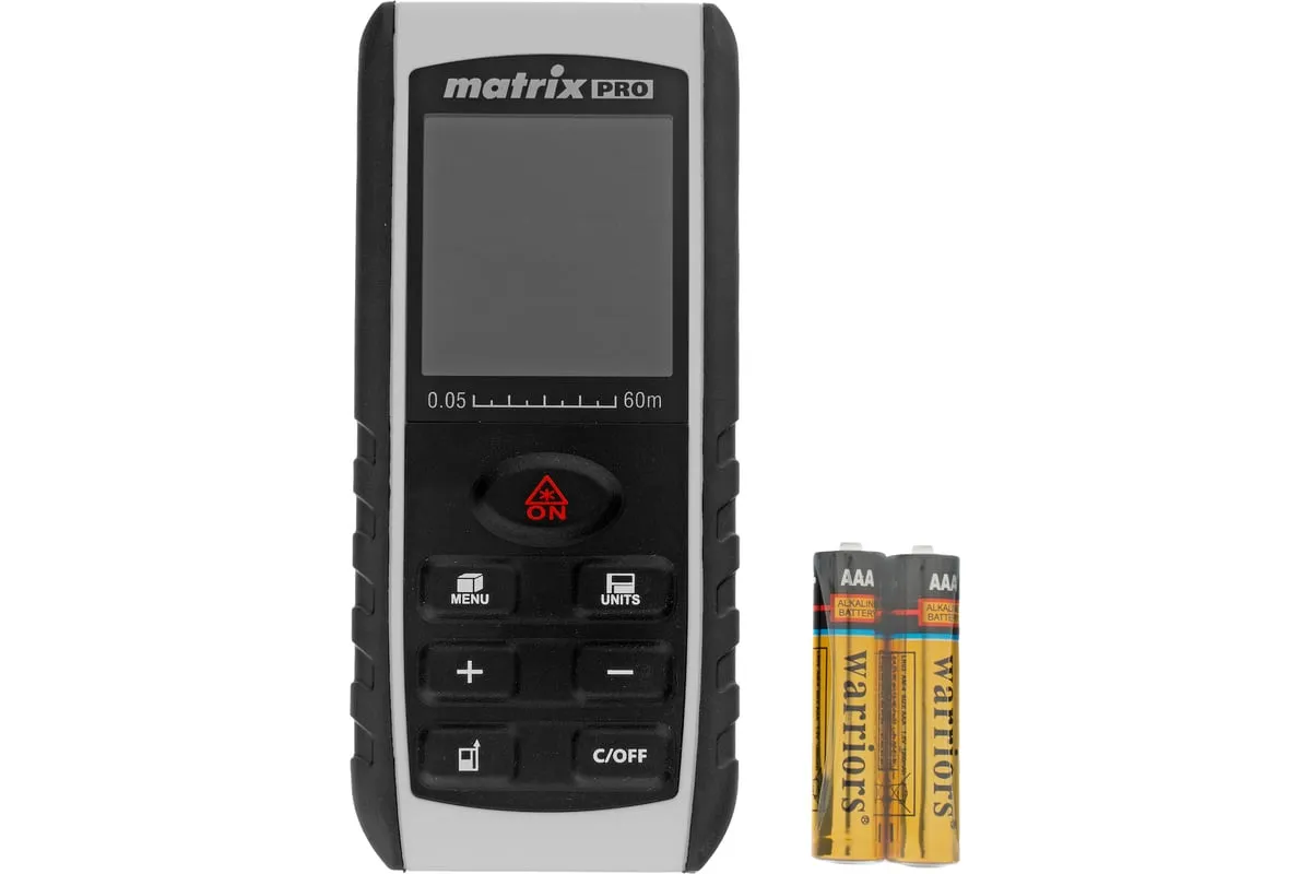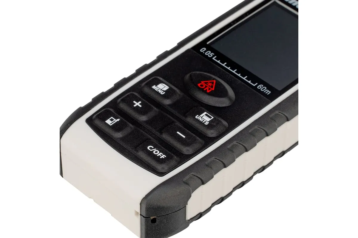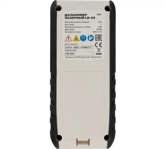 Лазерный дальномер с электронным угломером Matrix LD-60 38016 используется для измерения линейных расстояний и углов, вычисления площадей и объемов.