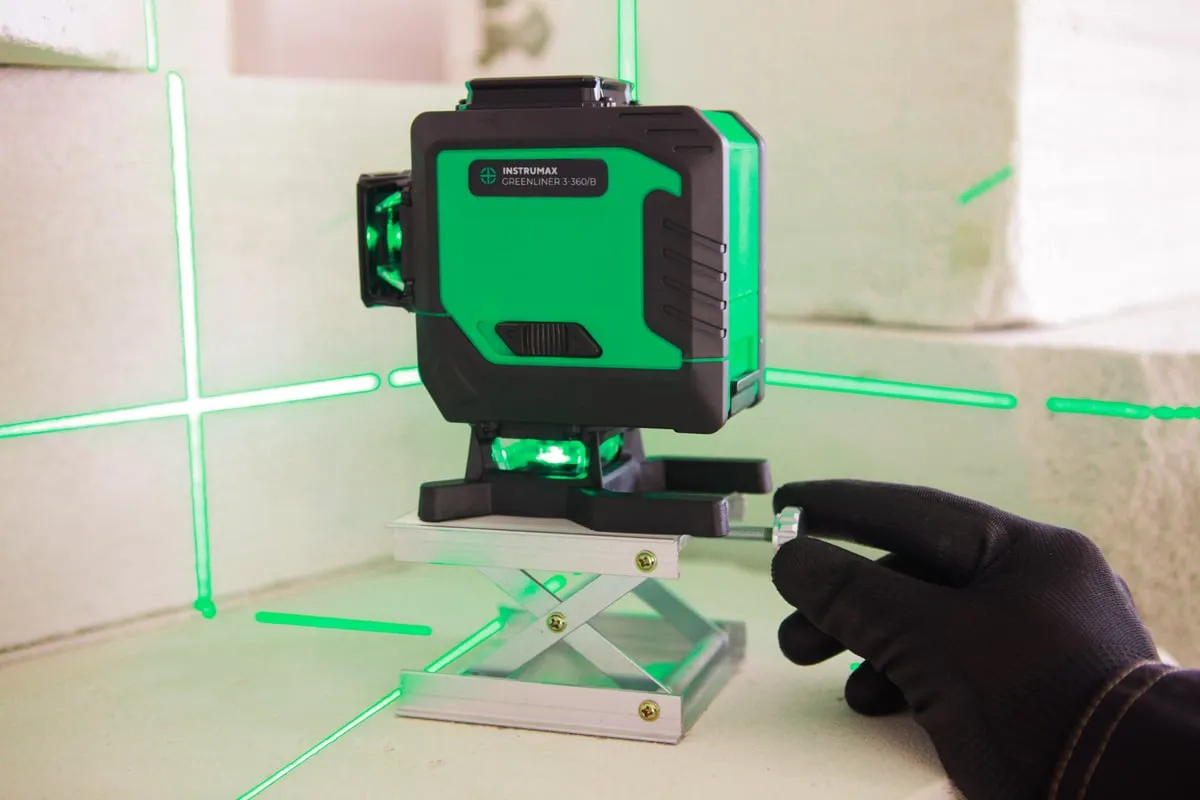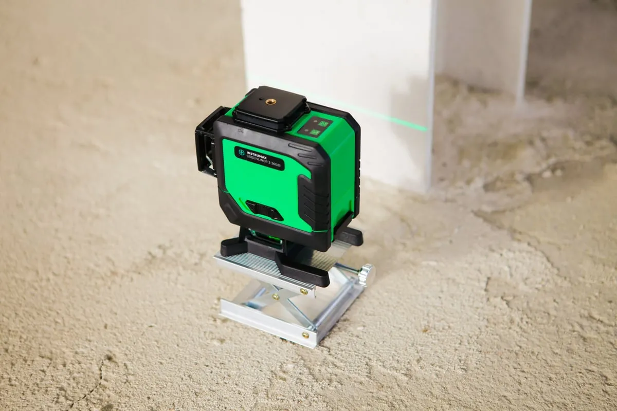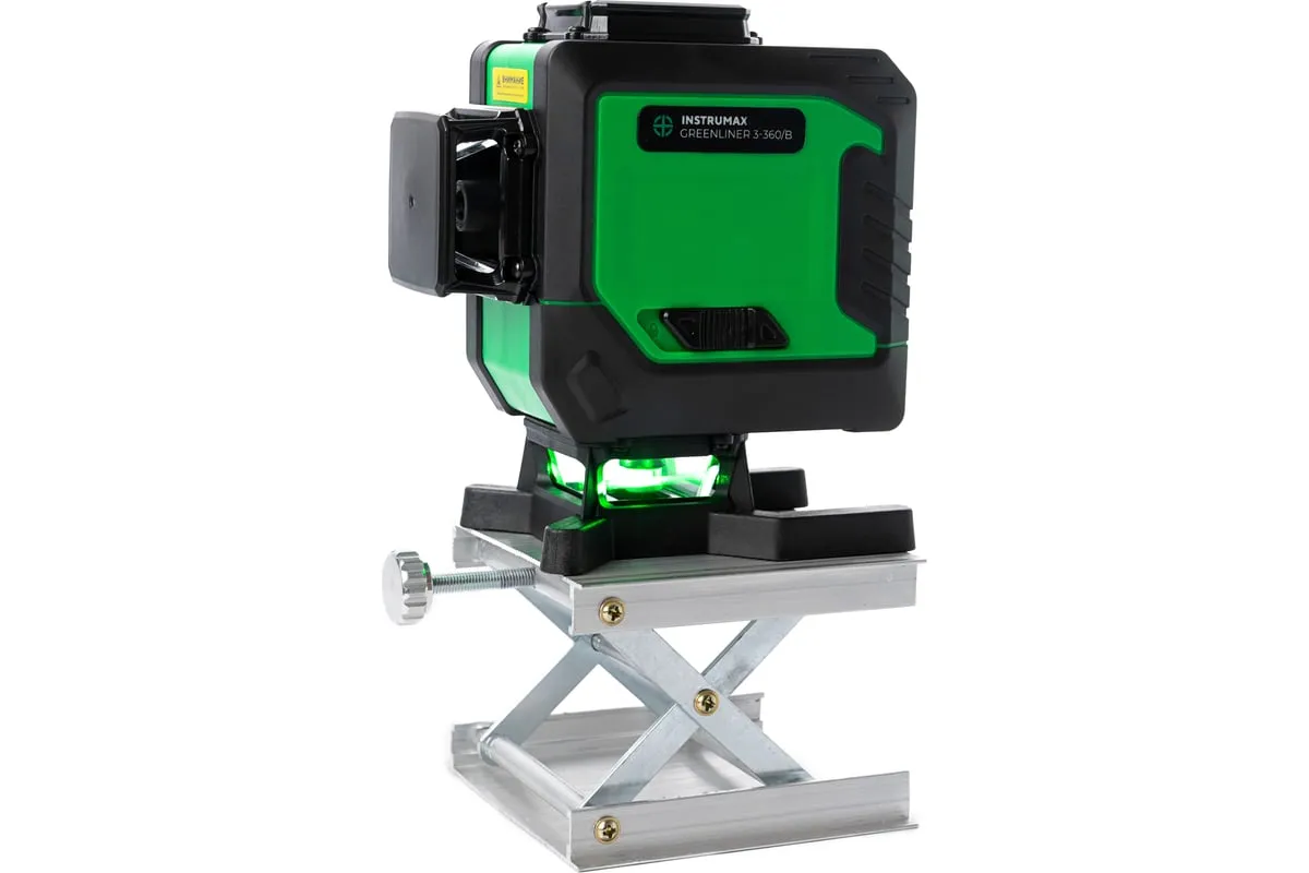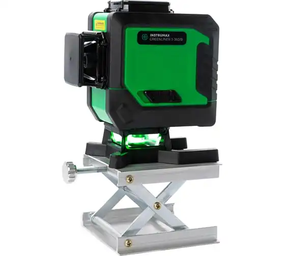 Лазерный уровень INSTRUMAX GREENLINER 3-360/B SET IM0150 – модель с тремя взаимно перпендикулярными линиями. Имеет яркие зеленые лучи. Для построения замкнутых линий (360°) используется специальный излучатель.