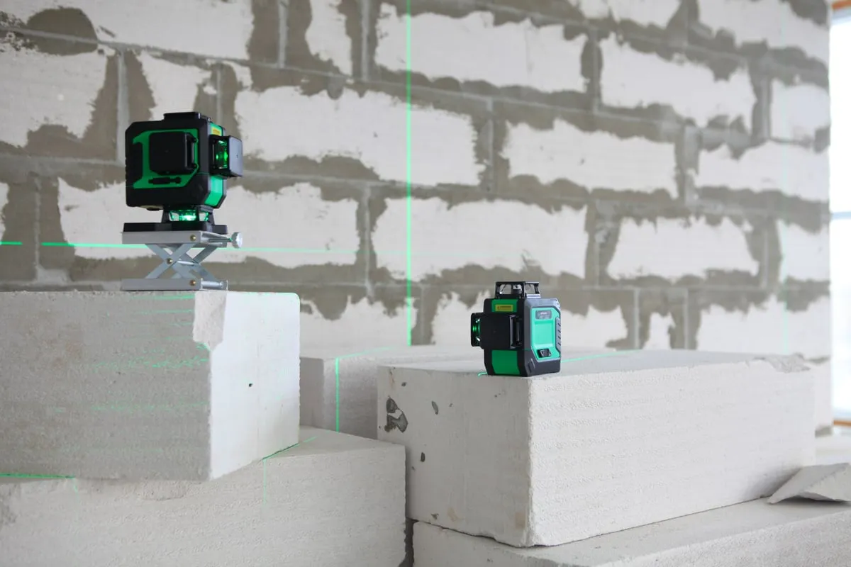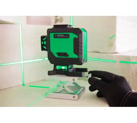 Удобная разметка. Уровень проецирует три линии: одну горизонтальную и две вертикальных. Все линии имеют развертку 360°. Луч для разметки будет видно в любой точке. При включении вертикальных линий получается перекрещивающиеся под прямым углом проекции. Очень удобно при выравнивании стен и углов между стенами. Лазерные линии можно поочередно отключать оставляя только необходимую для работы. Зеленый лазерный луч гораздо лучше видно чем красный при одинаковых условиях.