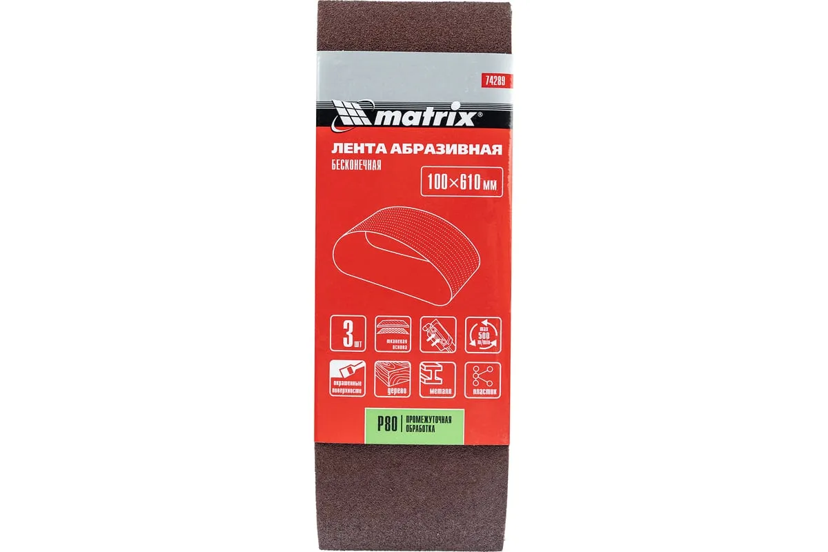 Абразивная лента Matrix 74289 зернистостью P 80 поставляется в наборе из 3 шт. и используется на ленточных шлифовальных машинах, совместимых со сменными элементами размером 100 х 610 мм. Применяется для промежуточной обработки и получения более гладкой поверхности деревянных, пластиковых и металлических предметов. Подходит для снятия лака, краски, ржавчины, заусенцев и т.д.