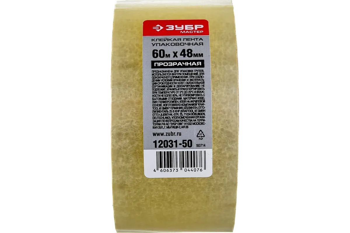 Прозрачная клеящая лента Зубр 12031-50 используется для упаковки грузов. Изготовлена из биоксиально-ориентированной полипропиленовой пленки с нанесением акрилового клеевого слоя. Обладает повышенной прочностью, которая с течением времени только увеличивается.Длина 60 м.