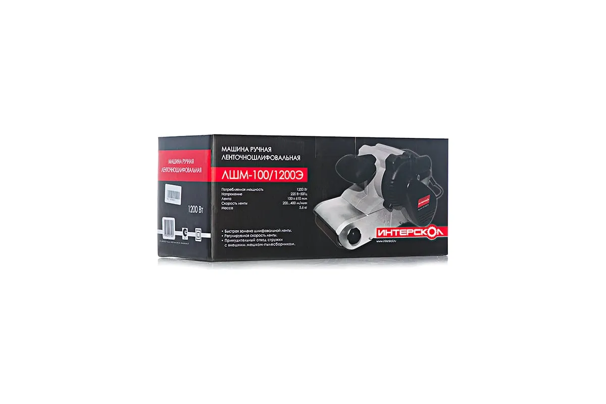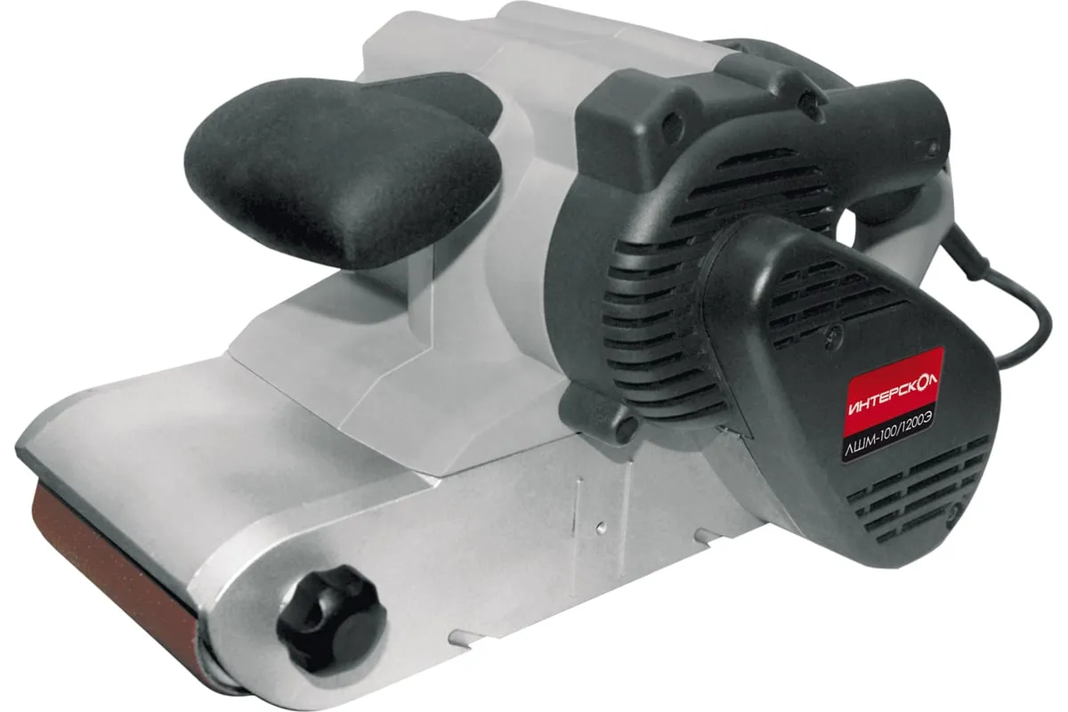 Ленточная шлифмашина Интерскол ЛШМ-100/1200Э 72.1.1.00 - инструмент мощностью 1200 Вт, предназначенный для шлифования изделий из древесины и металла, обдирки старого лака и краски, заточки. В комплекте поставляются струбцины для фиксации инструмента в перевернутом виде. Предусмотрена система пылеудаления для сохранения чистоты рабочего пространства и защиты органов дыхания оператора от мелкой пыли. Замена ленты не требует каких-либо дополнительных инструментов, что значительно экономит время. В шлифмашине реализована электронная регулировка числа оборотов.