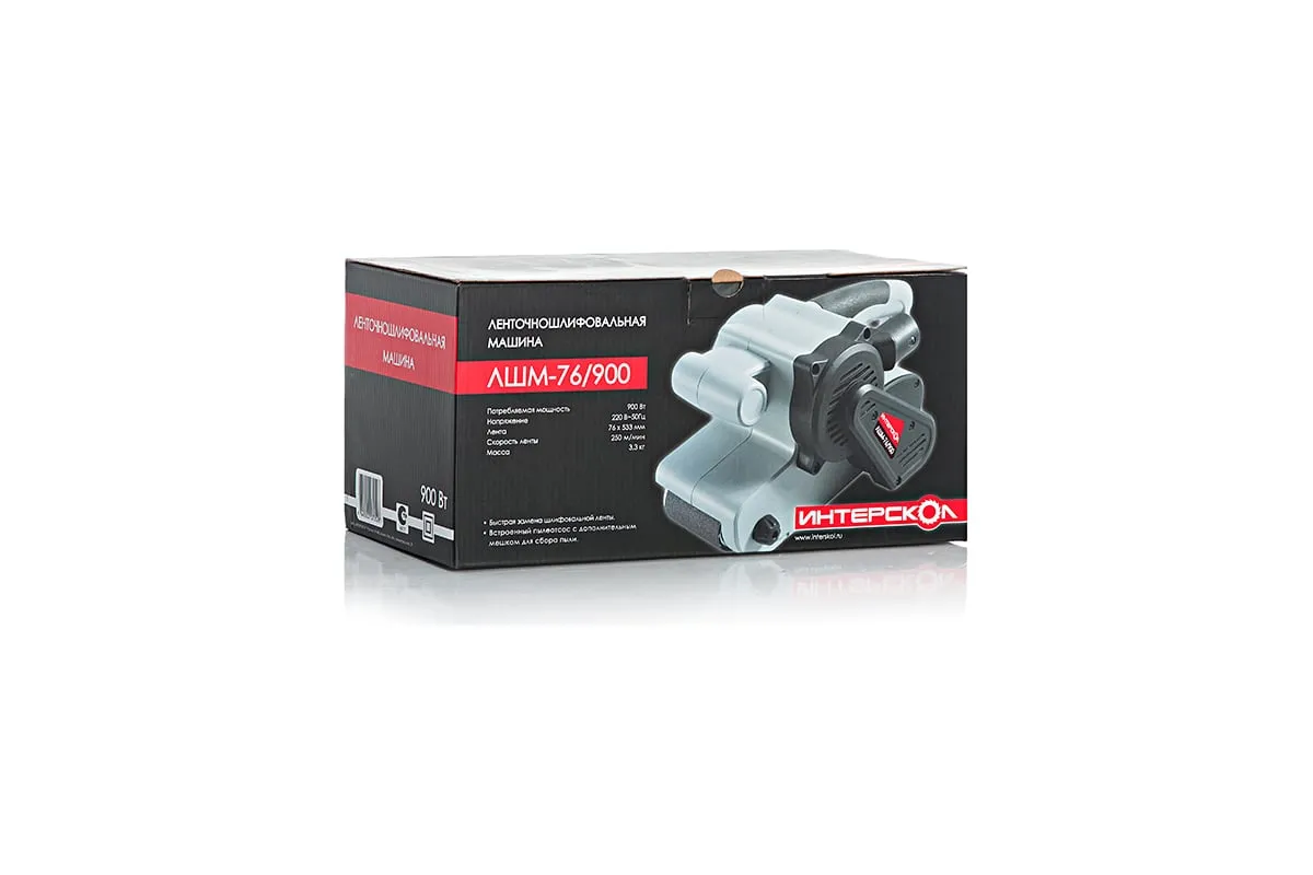 Ленточная шлифмашина Интерскол ЛШМ-76/900 16.1.0.00 предназначена для зачистки металлических деталей, выравнивания и обработки деревянных заготовок и снятия слоя краски с поверхностей. Встроенный пылеотсос отсасывает основное количество пыли с матерчатый мешок, во время работы с металлом мешок надо снимать в избежании возгорания от раскаленных искр. Давить на машину при работе не следует, достаточно давления ее собственного веса.
