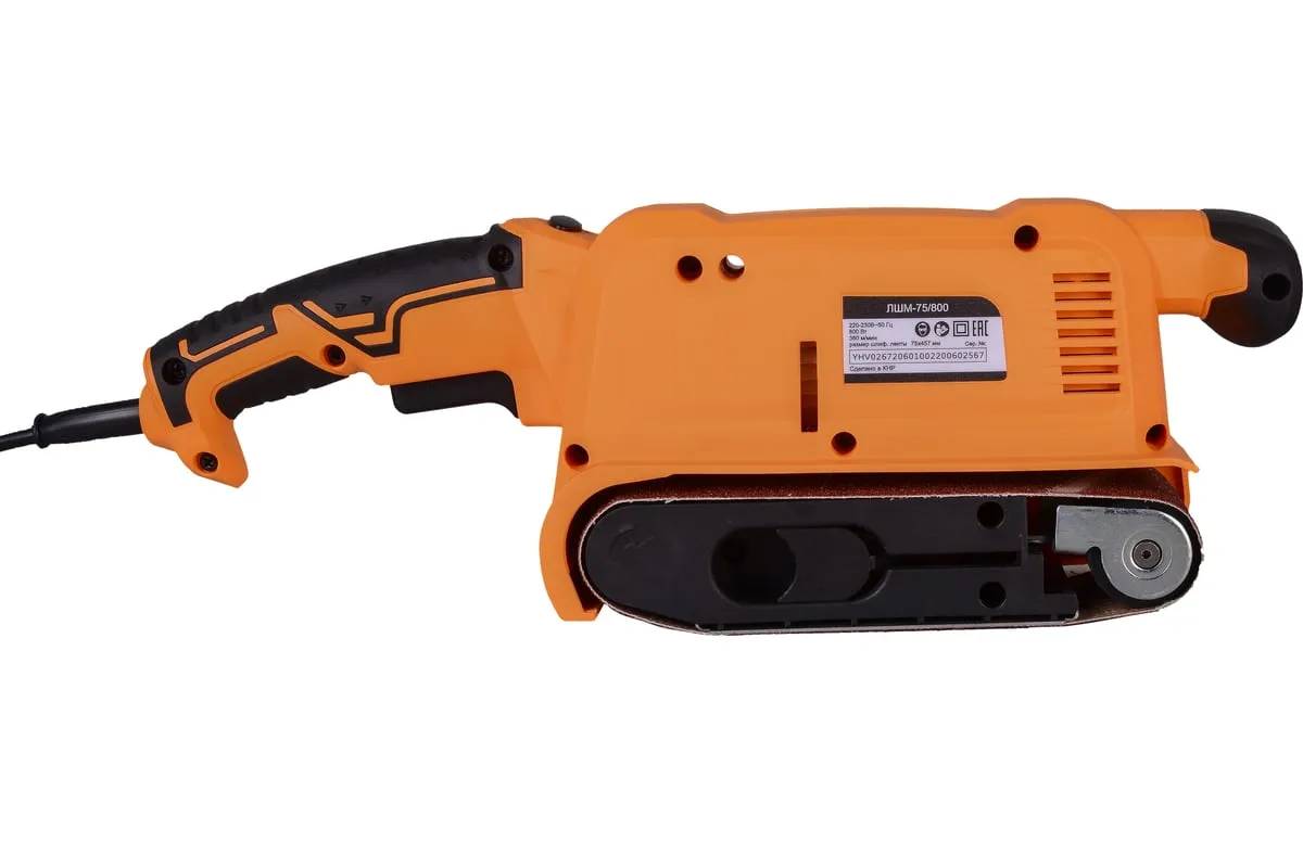 Ленточная шлифовальная машина Вихрь ЛШМ-75/800 предназначена для профессионального и бытового использования при проведении ремонтных/строительных работ. Электродвигатель мощностью 800 Вт обеспечивает скорость вращения до 360 м/мин и высокую производительность. Шлифовальная лента длиной 457 мм и шириной 75 мм позволяет обрабатывать большую площадь за короткий срок. Вместительный пылесборник накапливает опилки и пыль с обрабатываемой поверхности. Это позволяет сохранять порядок на рабочем месте и снижает уровень пыли в воздухе. Возможность подключения инструмента к промышленному пылесосу обеспечивает комфортную работу в помещении. Специальный рычаг обеспечивает быструю замену абразивной ленты.