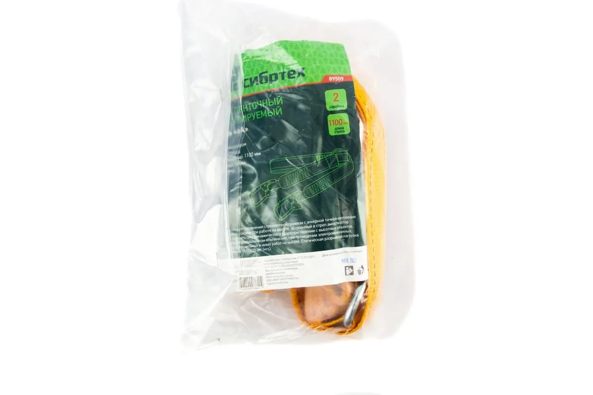 Ленточный нерегулируемый строп Сибртех 89509, модель «аА» с амортизатором, предназначен для соединения удерживающей (страховочной) привязи с анкерной точкой крепления. Применяется в ходе строительных, монтажных кровельных и других операций, когда необходимо обеспечить безопасность работника. Применение без страховочно-удерживающей привязи недопустимо.