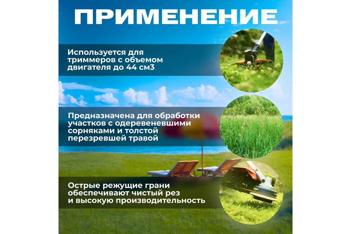 Предназначена для обработки участков с обычной, не жесткой травой.