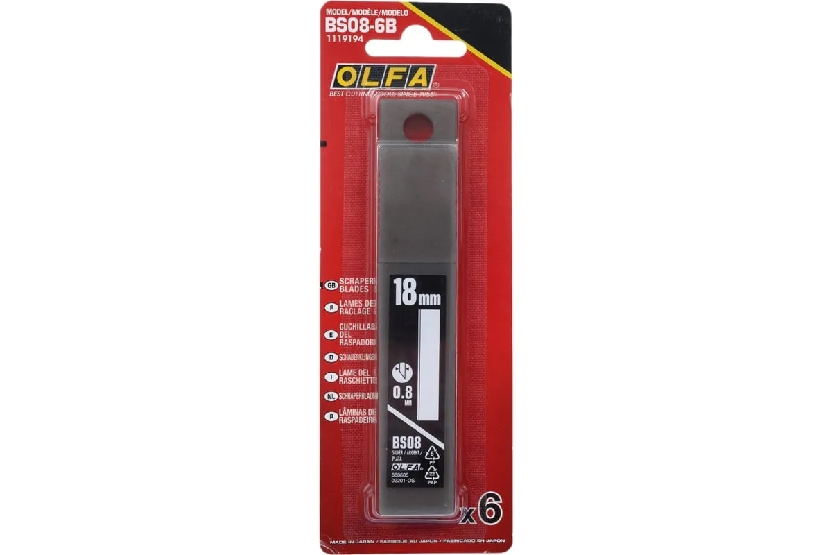 Лезвие OLFA 100 мм, 6 шт OL-BS08-6B для скребков изготовлено из высококачественной японской инструментальной стали. Жесткая конструкция позволяет выполнять любые работы по очистки поверхностей требующие больше дополнительных усилий, включая клей и эпоксидную смолу. Поставляется в пластиковом футляре для хранения и утилизации. Подходит для скребков OLFA XSR-300 и XSR-600.