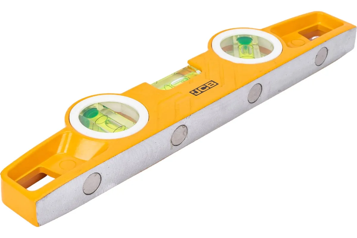 Литой магнитный уровень JCB 250 мм JBL008 предназначен для выявления отклонений поверхностей от произвольно заданных углов, а также горизонтали и вертикали. Технологичность всех узлов и деталей инструмента облегчает работу и делает её более комфортной. Инструмент выполнен из качественных материалов, благодаря чему отличается надежностью и долговечностью.