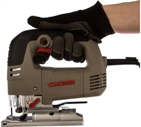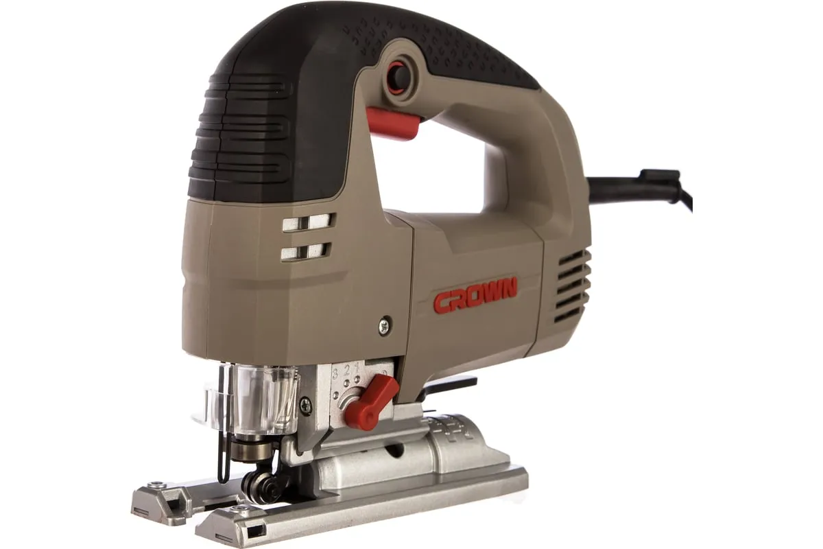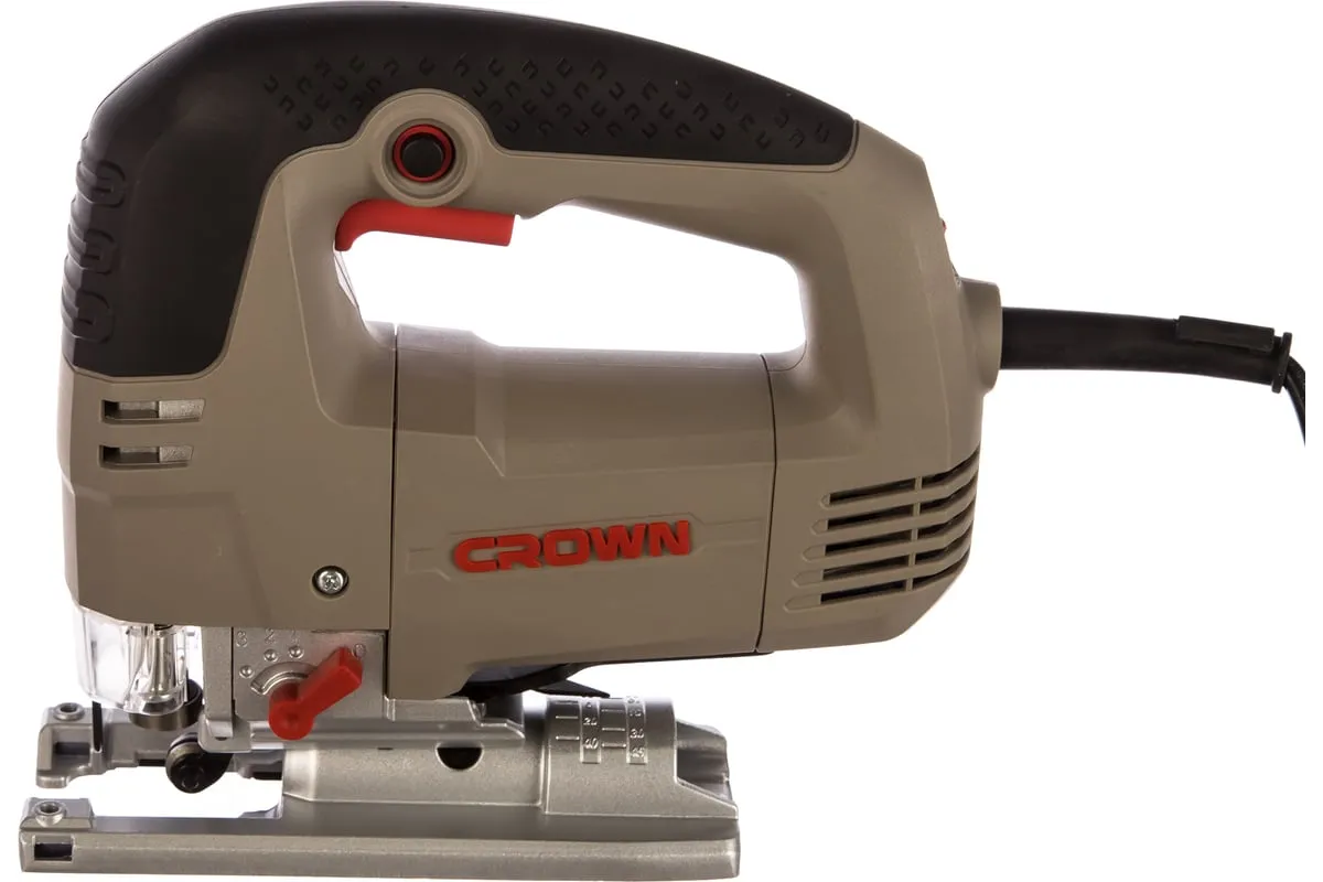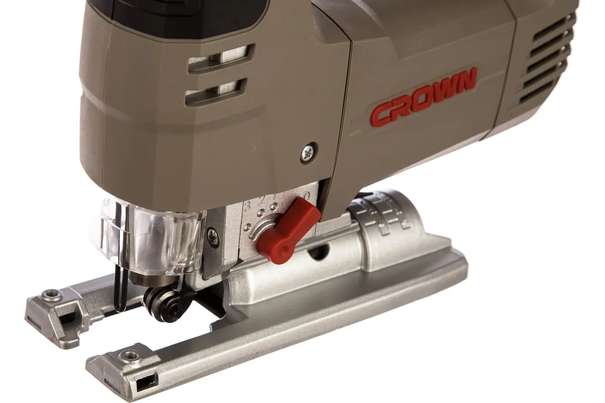 Электролобзик CROWN CT15189 оснащен регулировкой скорости, что позволяет подстроить инструмент под конкретную задачу. Это особенно удобно при работе с разными материалами, где требуется изменять скорость реза.