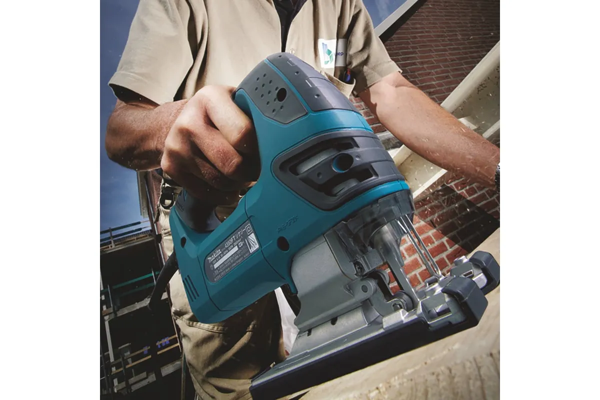 Лобзик Makita 4350 FCT - инструмент профессионального класса, предназначенный для распила различных материалов: древесины, пластика, металла. С его помощью можно производить как прямой, так и фигурный рез. Корпус инструмента хорошо продуман: эргономичная рукоятка и прочное алюминиевое основание. Низкий уровень шума и вибрации обеспечивают комфортную работу.