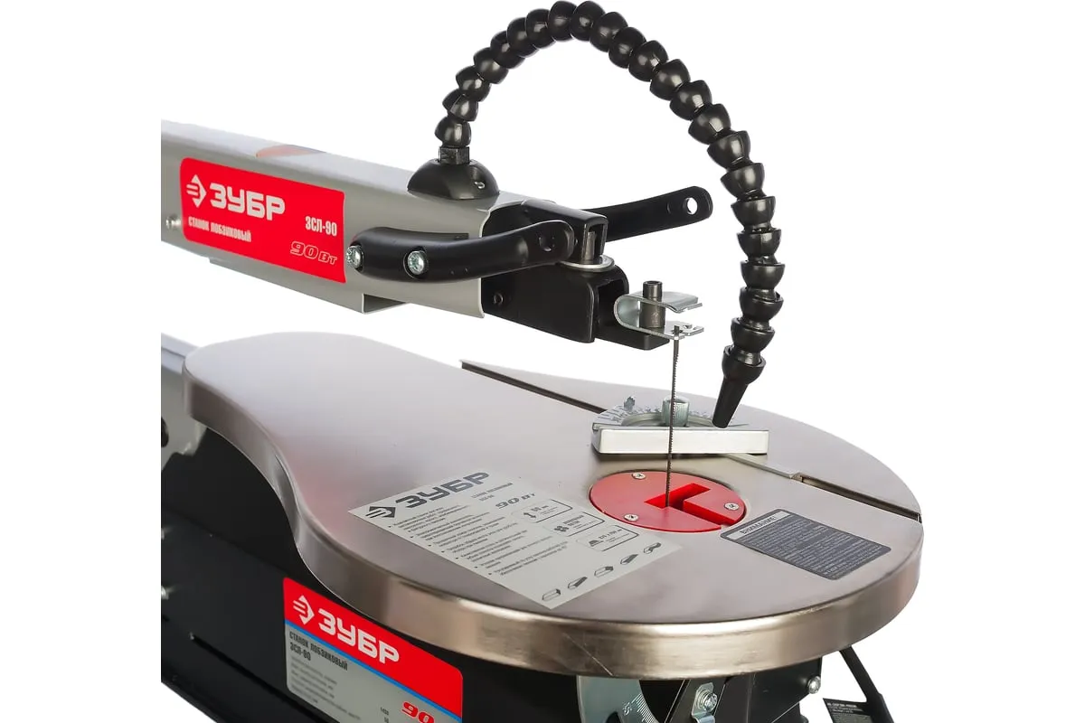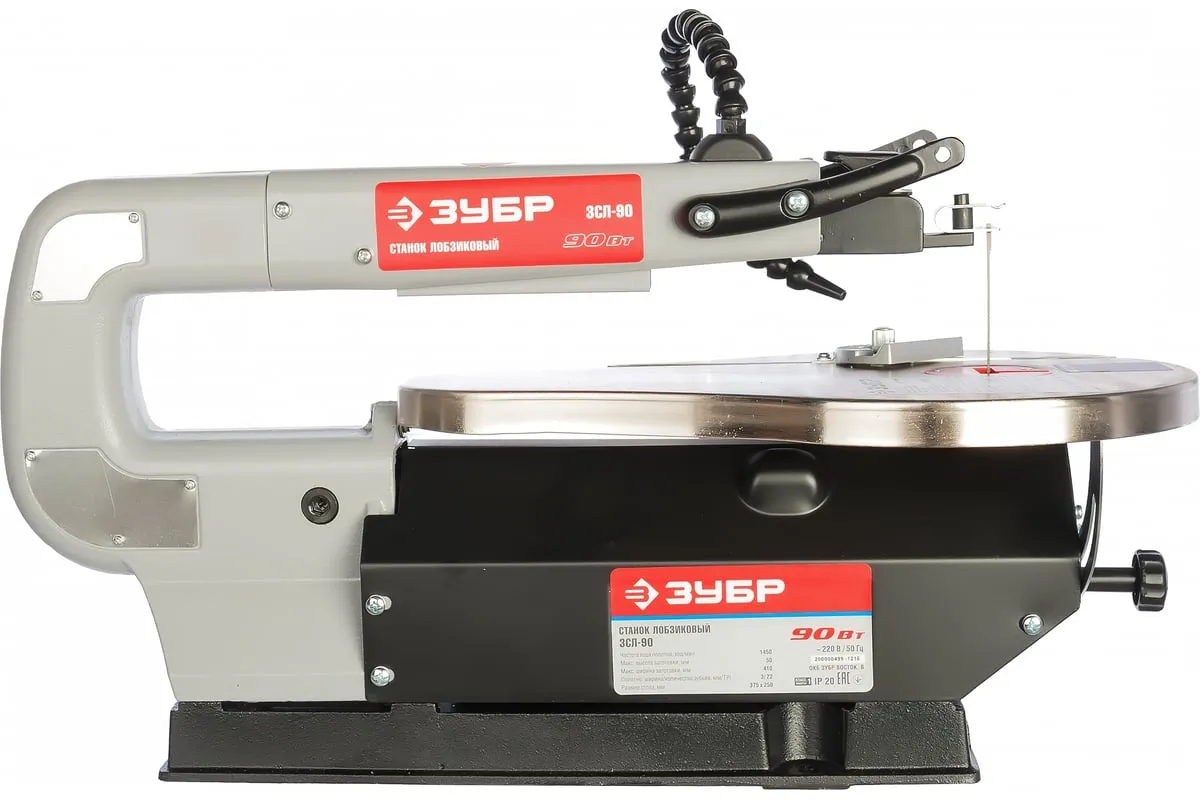 Лобзиковый станок ЗУБР ЗСЛ-90 используется на небольших производствах для распилки деревянных или пластмассовых изделий. Рабочий стол имеет возможность наклоняться на угол от 0 до 45 градусов, что позволяет выполнять пилы под углом. Для точности выполнения работ в комплект станка входит боковой упор с транспортиром.