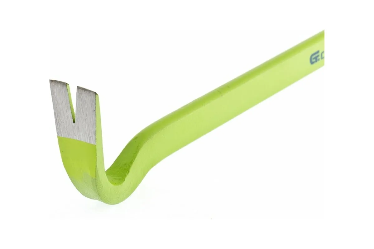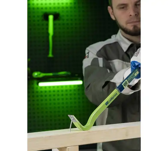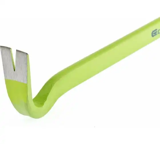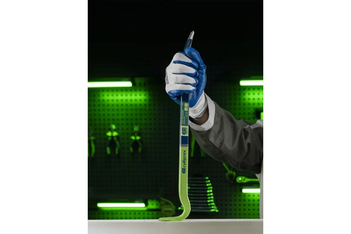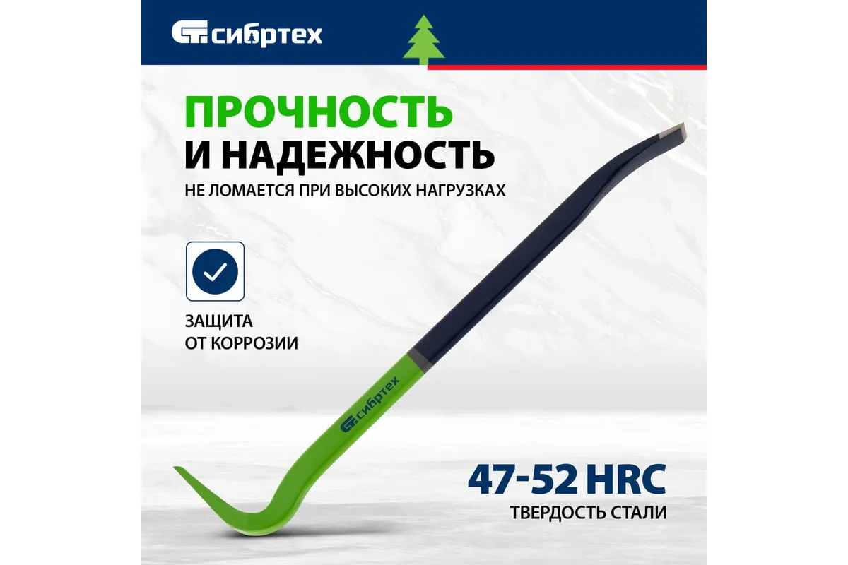 Лом-гвоздодер Сибртех 25241, 450 х 22 х 12 мм, позволяет удалять гвозди, а также срывать доски с пола, разбирать ящики, демонтировать заборы, вагонку со стен или шифер с крыши. Может служить рычагом для поднимания грузов, поскольку прямоугольно-овальный профиль значительно усиливает его на момент излома. Инструмент подходит для профессионального и бытового применения.