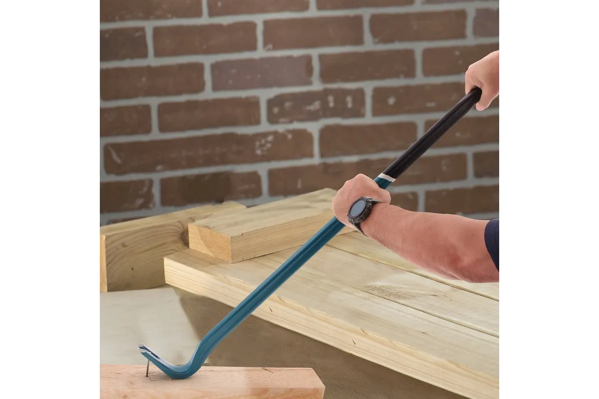 Лом-гвоздодер 900х30х17 мм GROSS 25239 применяется для хозяйственных работ. Позволяет извлекать гвозди, также инструмент можно использовать в качестве рычага. Корпус выполнен из прочного материала - рельсовой стали. Двутавровый профиль усиливает корпус гвоздодера, исключая излом при больших нагрузках.