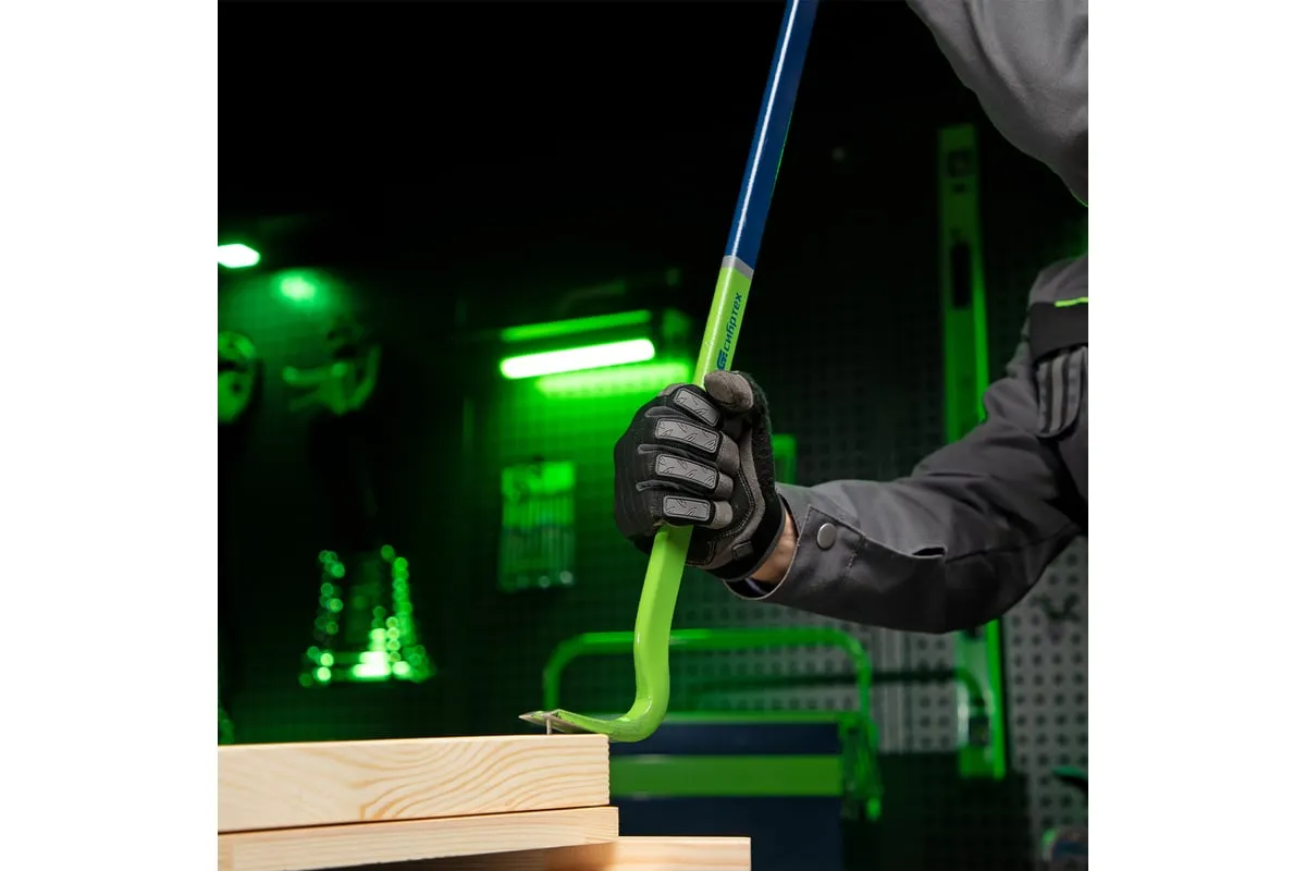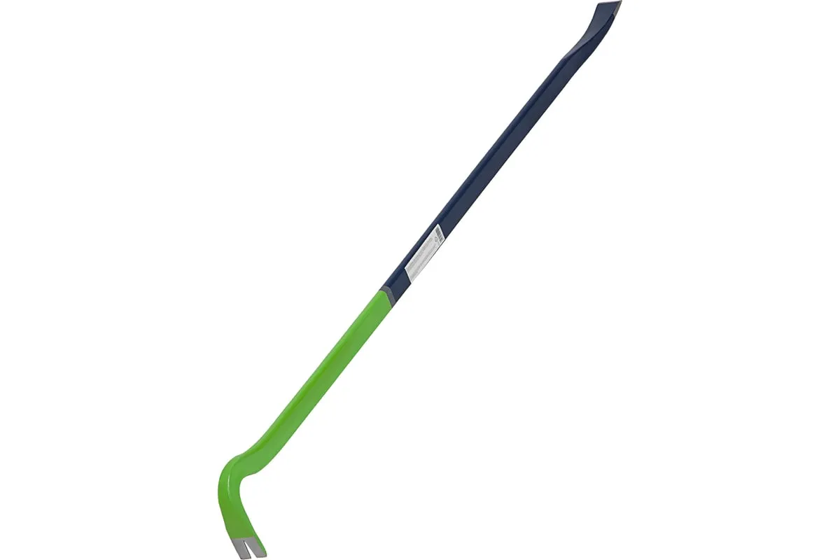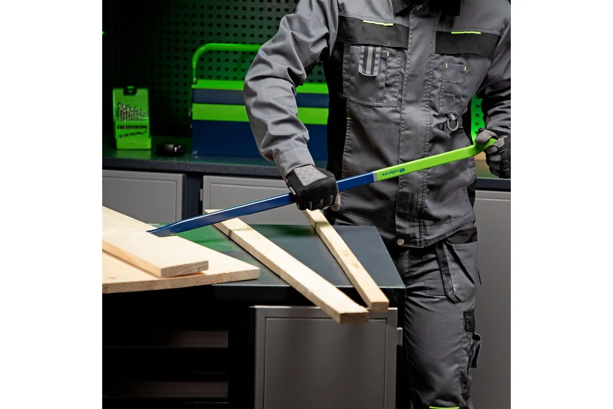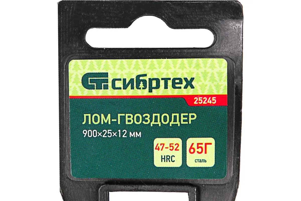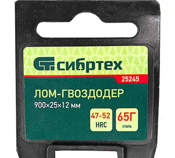 Лом-гвоздодер Сибртех 25245, 900 х 25 х 12 мм, позволяет удалять гвозди, а также срывать доски с пола, разбирать ящики, демонтировать заборы, вагонку со стен или шифер с крыши. Может служить рычагом для поднимания грузов, поскольку прямоугольно-овальный профиль значительно усиливает его на момент излома. Инструмент подходит для профессионального и бытового применения.