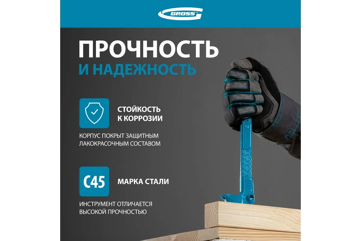Лом-гвоздодер Gross мини 25251, 250 х 21 х 9 мм, позволяет легко извлекать даже гвозди с глубоко утопленными шляпками - справляться с ними помогает специальный выступ на рабочей части инструмента. Лом-гвоздодер будет полезен на строительной площадке, во время ремонта, а также при решении бытовых задач.