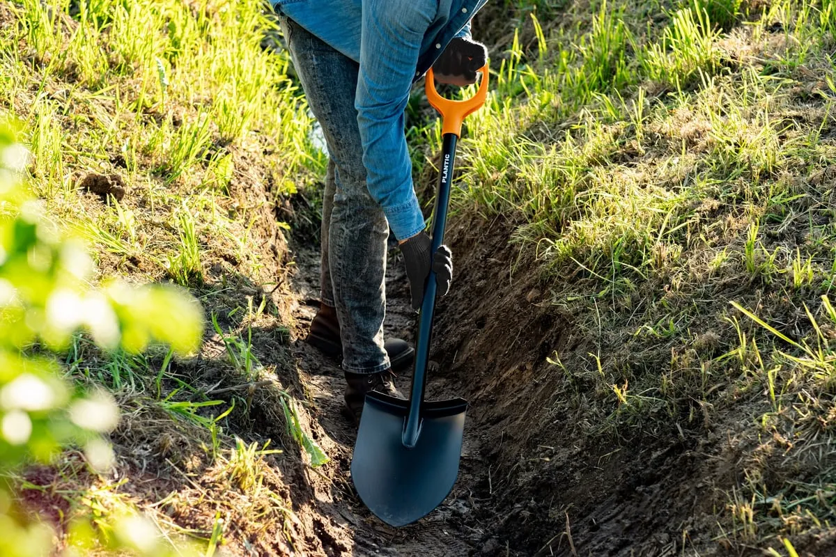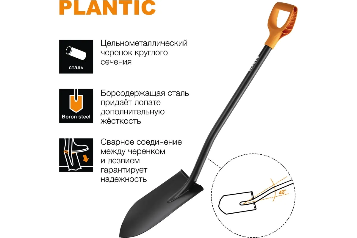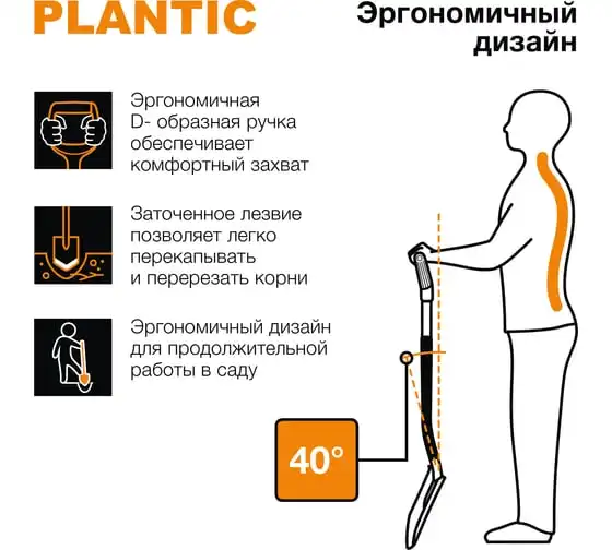 Лопата для земляных работ Plantic Terra 11003-01 подходит для выкапывания траншей, компостных ям, септиков и так далее.