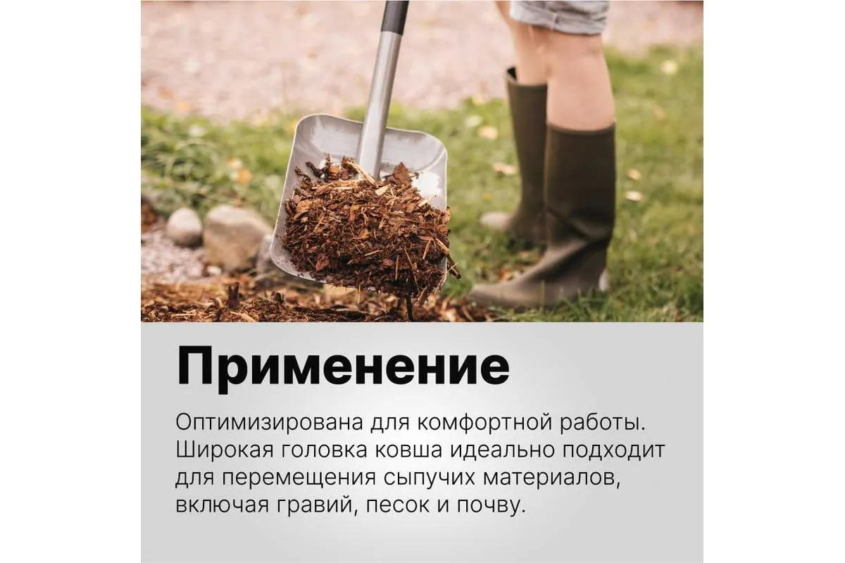 Эргономичная закругленная лопата разработана для эффективного копания, окантовки и посева верхнего слоя почвы.