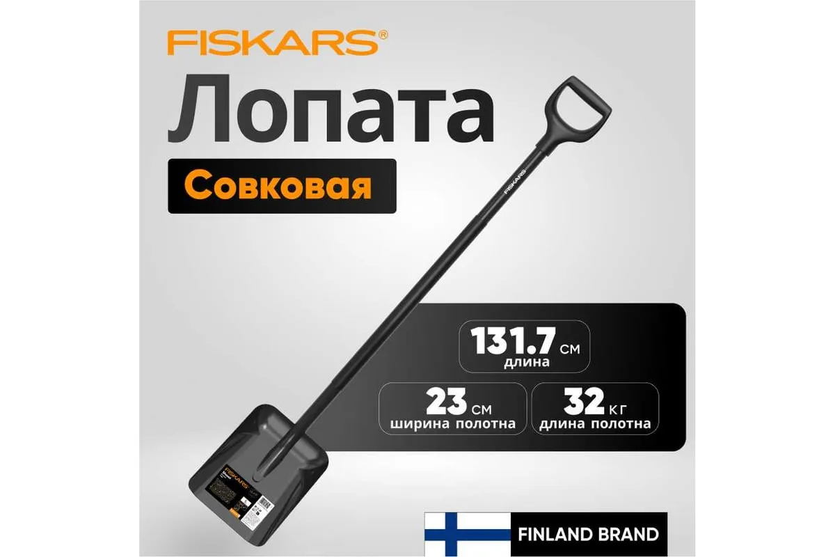 Лопата совковая FISKARS Ergonomic Pro (1066711) предназначена для сложных специализированных задач и подъема тяжестей.