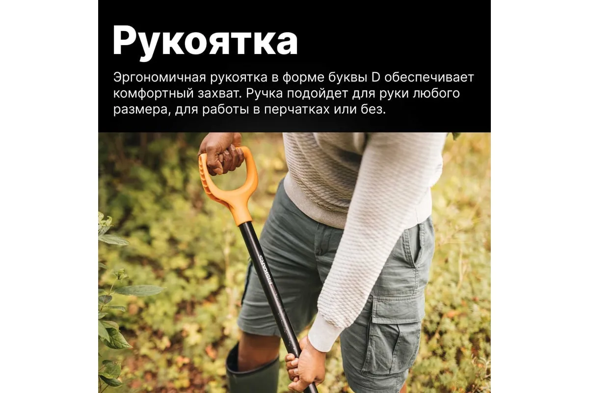Лопата совковая Fiskars Solid 1066718 имеет широкий ковш для перемещения грязи, песка, гравия и других сыпучих материалов. Его стальная голова приварена к металлическому валу для дополнительной прочности. D-образна ручка подходит для всех размеров рук, с перчатками или без них.