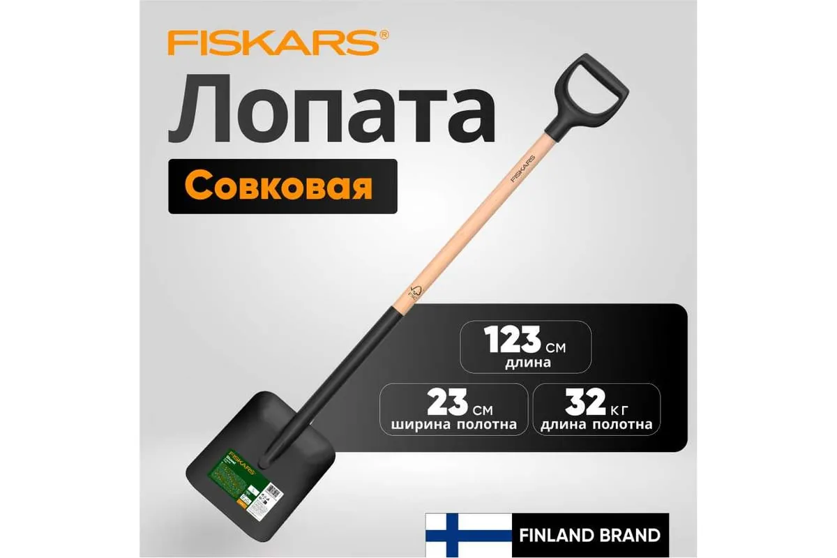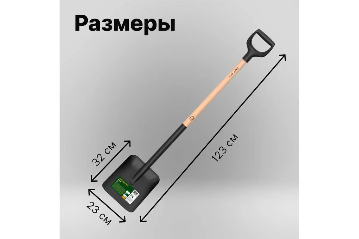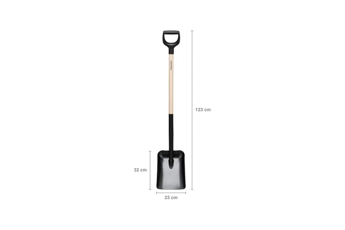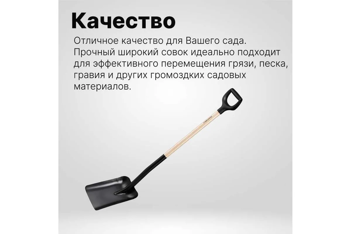 Лопата совковая FISKARS (1066723) - отличное качество для вашего сада. Прочный широкий совок идеально подходит для эффективного перемещения грязи, песка, гравия и других громоздких садовых материалов. Головка приварена к сертифицированному FSC деревянному валу для оптимальной долговечности.