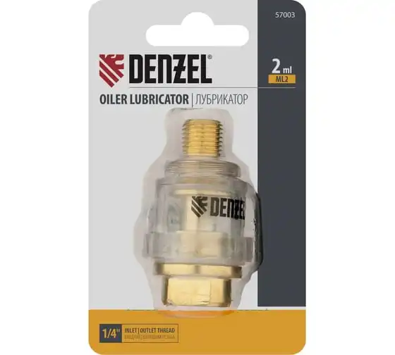 Лубрикатор Denzel ML2 57003 с рабочим давлением 10 бар и присоединительным размером 1/4" имеет пропускную способность 350 л/мин и обеспечивает поступление смазки в пневматическую систему. Предотвращает преждевременный износ и поломку рабочих деталей пневмоинструмента: гайковерта, дрели, молотка и т.д.