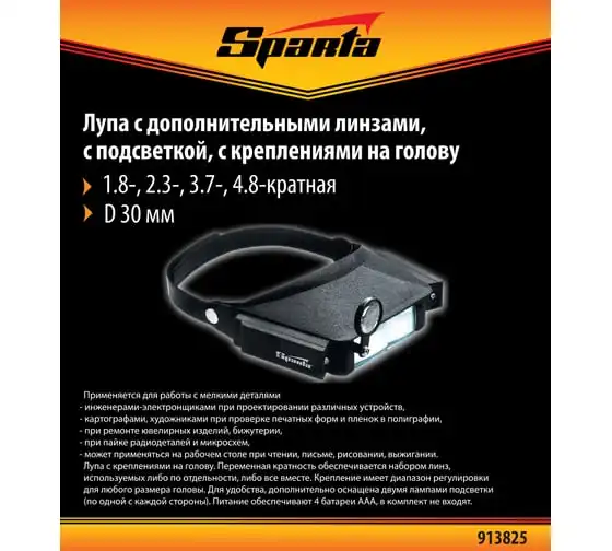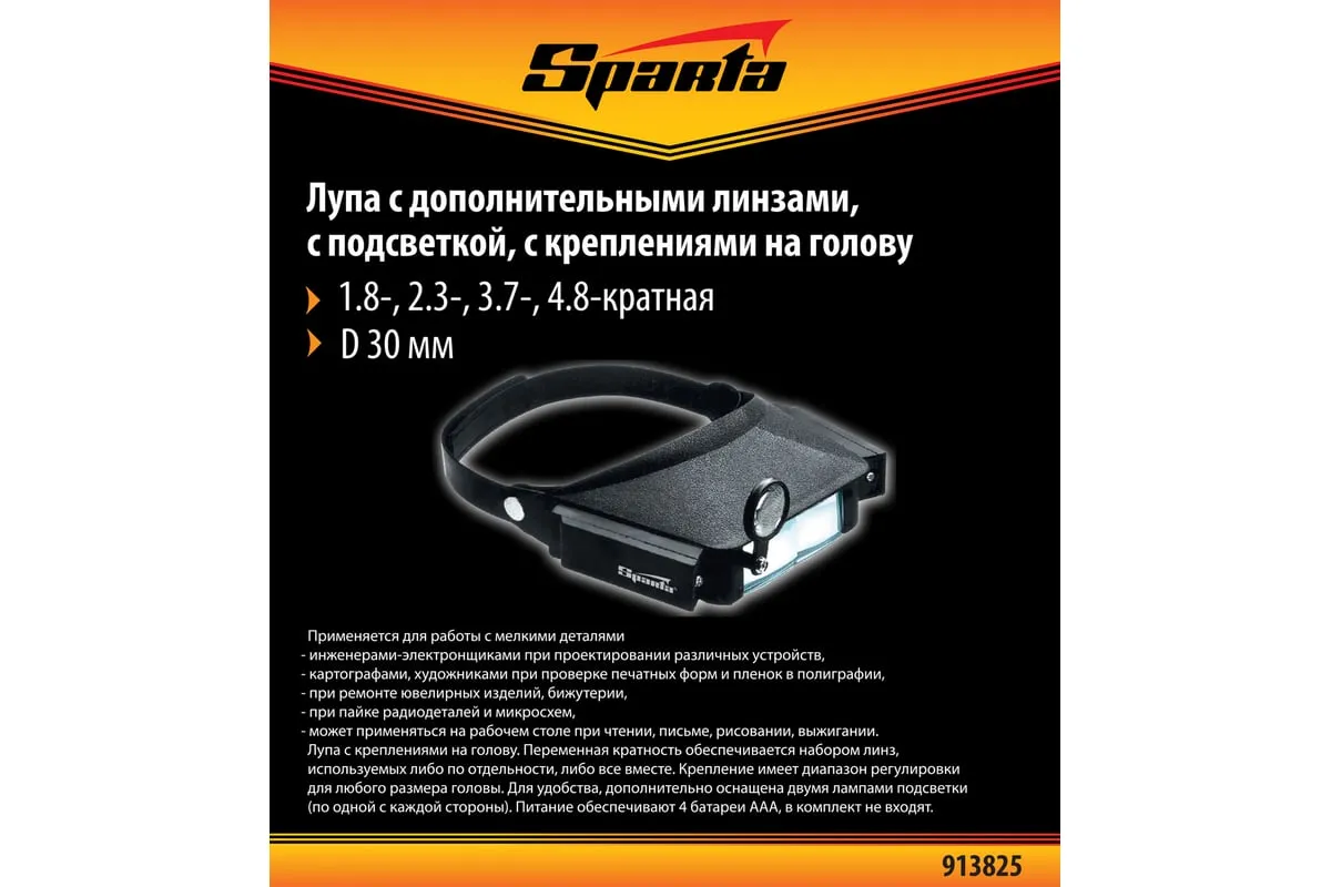 Лупа с дополнительными линзами SPARTA 913825 является оптическим приспособлением с подсветкой для работ в условиях слабой освещенности. Оснащена дополнительными линзами для увеличения сверхмалых предметов. Обод для крепления на голове регулируется.