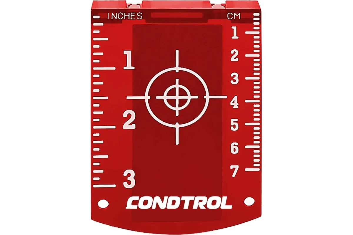 Магнитная мишень CONDTROL предназначена для работы совместно с лазерными нивелирами и применяется для разметки потолочных систем и каркасных конструкций. Оснащена магнитом, благодаря которому крепится к направляющим или профилю, и подставкой для установки на поверхности. Имеет линейную разметку в сантиметрах и дюймах.