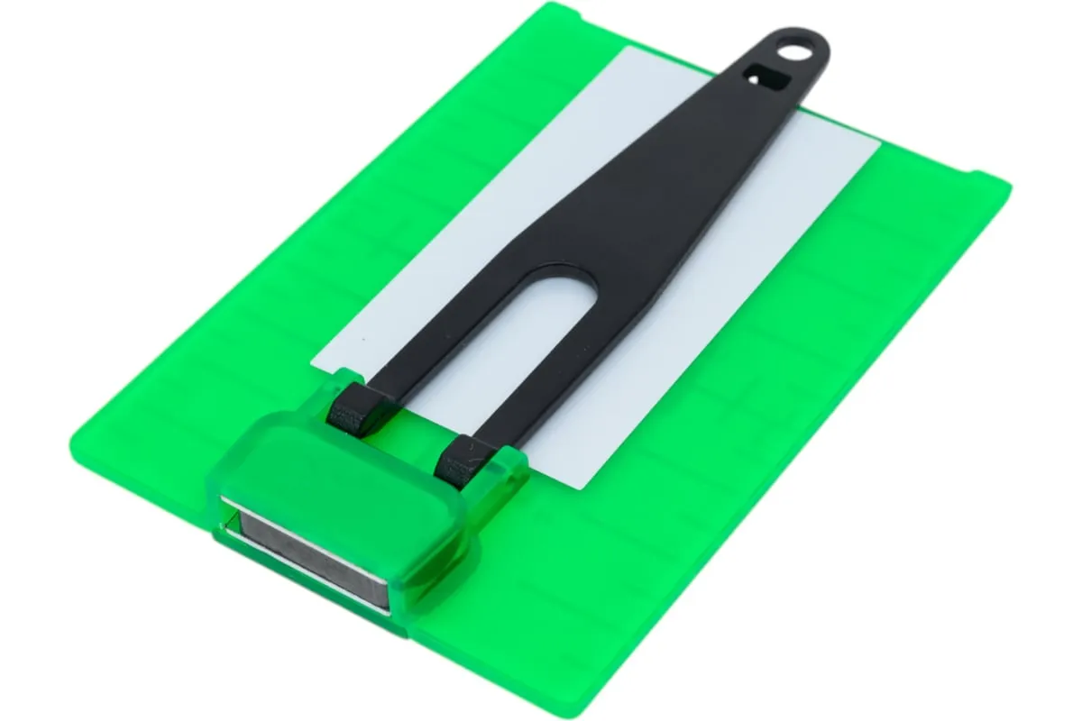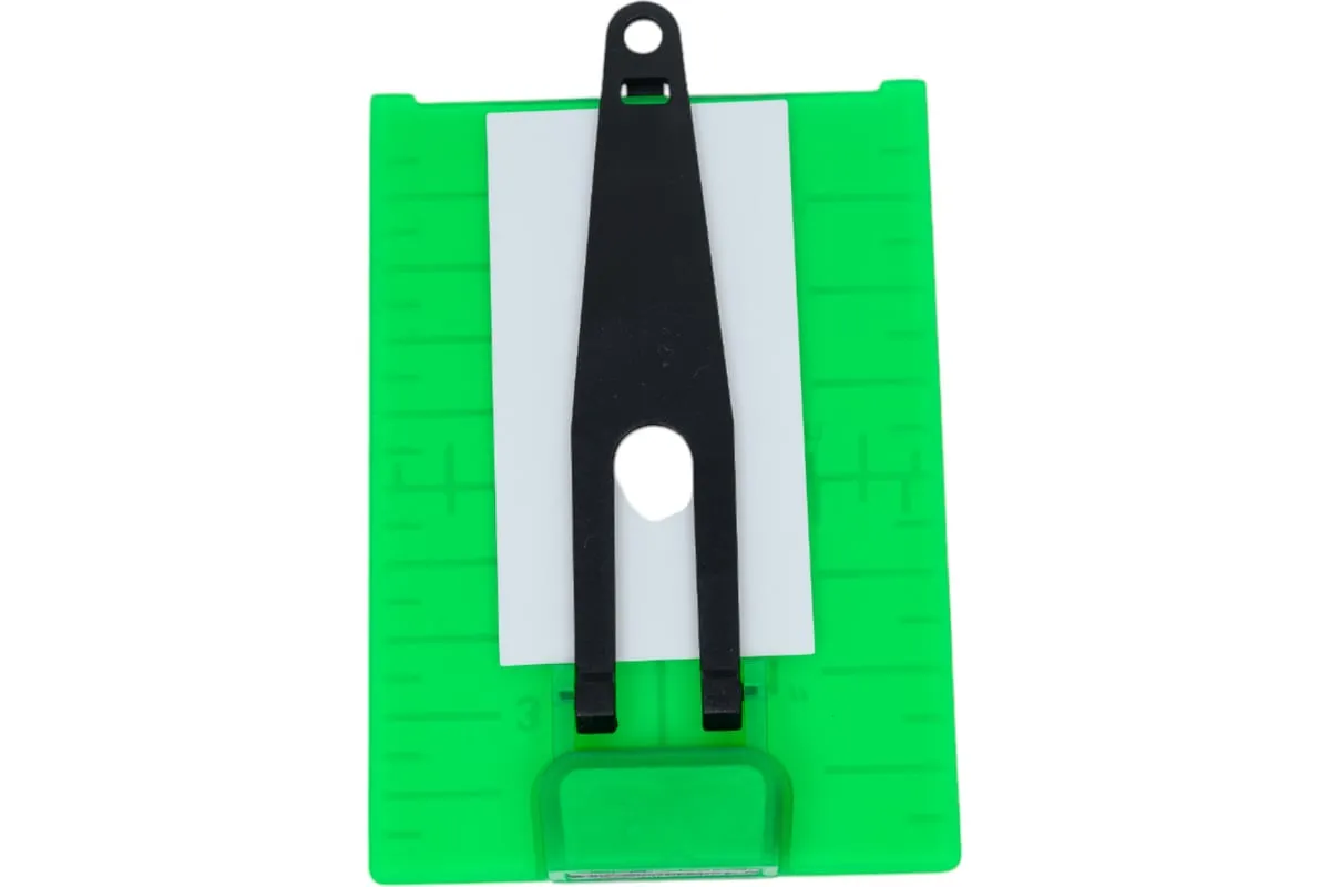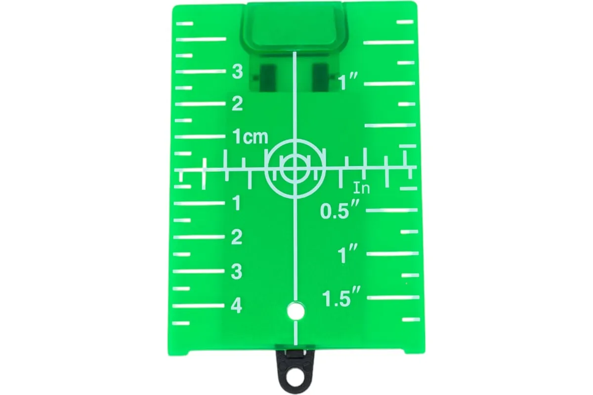 Магнитная лазерная мишень с подставкой предназначена для работы с лазерными нивелирами, оснащенными зеленым лазером. Этот аксессуар поможет вам производить разметку потолочных систем или каркасных конструкций, например под гипсокартон. Встроенный магнит позволит прикрепить мишень к потолочным направляющим или на каркасный профиль, а подставка позволит поставить мишень на пол или лаг. Мишень на своей поверхности имеет линейную разметку, которая позволит вам определить отклонение от номинального уровня и переносить контрольные точки при разметке лазерным нивелиром.