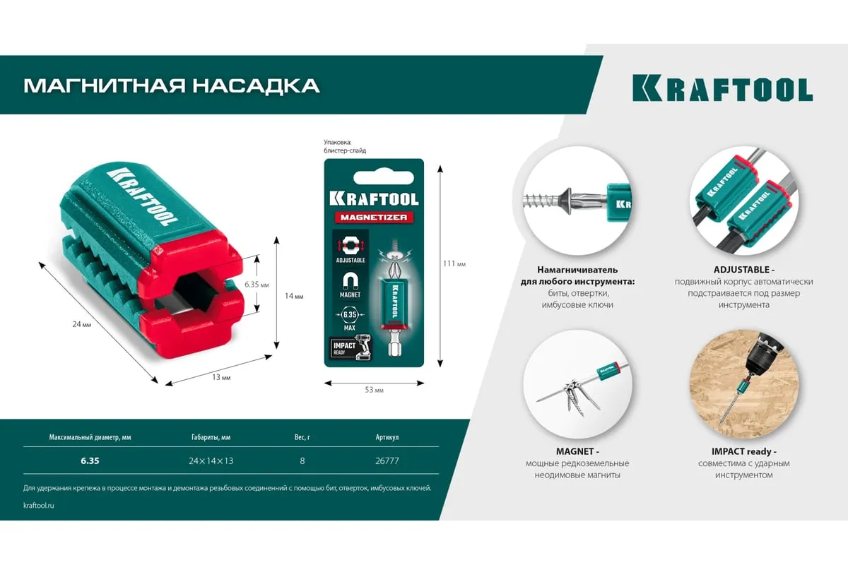 Магнитная насадка, благодаря неодимовому магниту, надежно удерживает крепеж из металла. Для удержания крепежа в процессе монтажа и демонтажа резьбовых соединений с помощью бит, отверток.