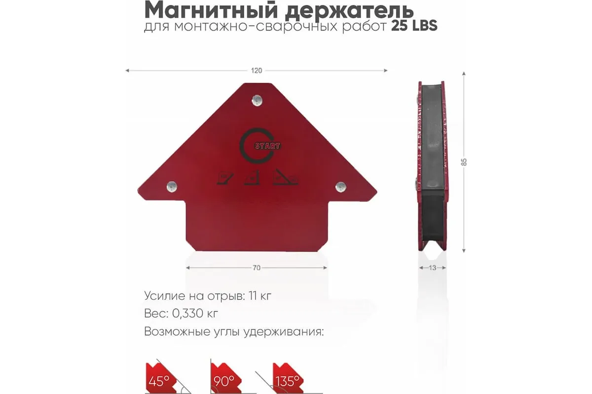 Магнитный фиксатор 25 LBS Start SM1601 позволяет производить точное выставление углов в процессе проведения сварочных работ, монтажа стальных конструкций.