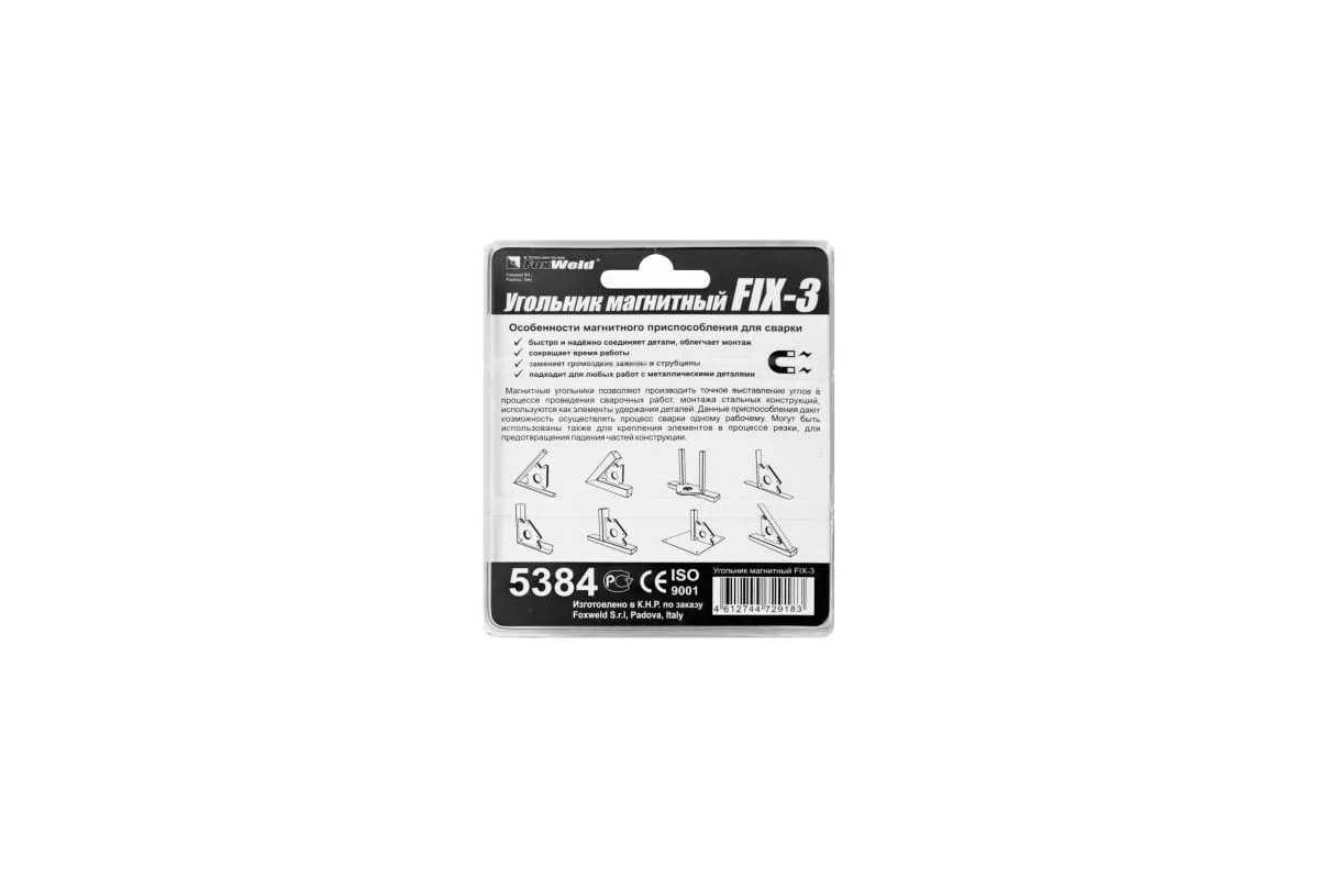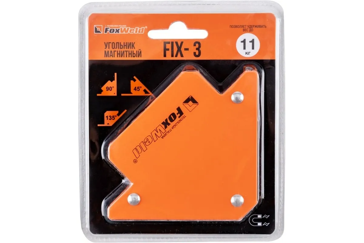 Магнитный угольник Foxweld FIX-3 до 11кг 5384 предназначен для фиксации металлических деталей и позволяет проводить точное выставление углов в процессе проведения сварочных работ, монтажа стальных конструкций и т.д. Данные приспособления дают возможность осуществлять процесс сварки одному рабочему, так как сборка и выставление элементов конструкции осуществляется не в процессе сварки, а перед ней. Могут быть использованы также для крепления элементов в процессе резки, для предотвращения падения частей конструкции.