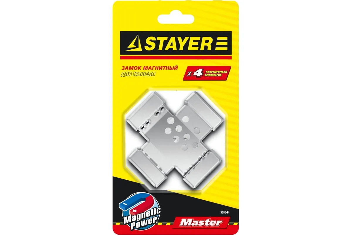 Замок магнитный для кафеля STAYER 3395-B применяется для крепления кафельной плитки или плиточной панели в четырех точках по периметру для получения скрытой нише в стене.